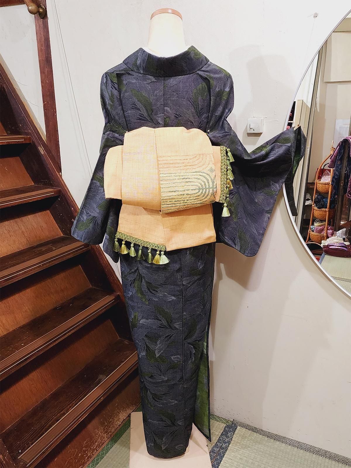 - コーデ提案: 無地やシンプルな帯を合わせて柄を引き立てたり、幾何学模様やアート感のある帯でモードな印象に。小物でグリーンやシルバーを添えると一層洗練されたスタイルに仕上がります。