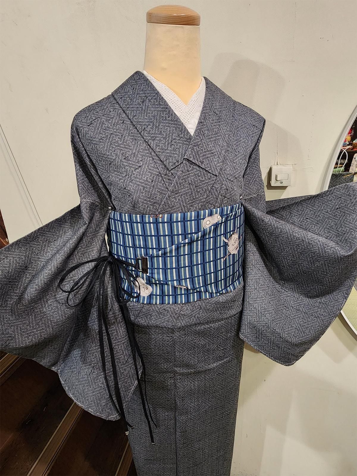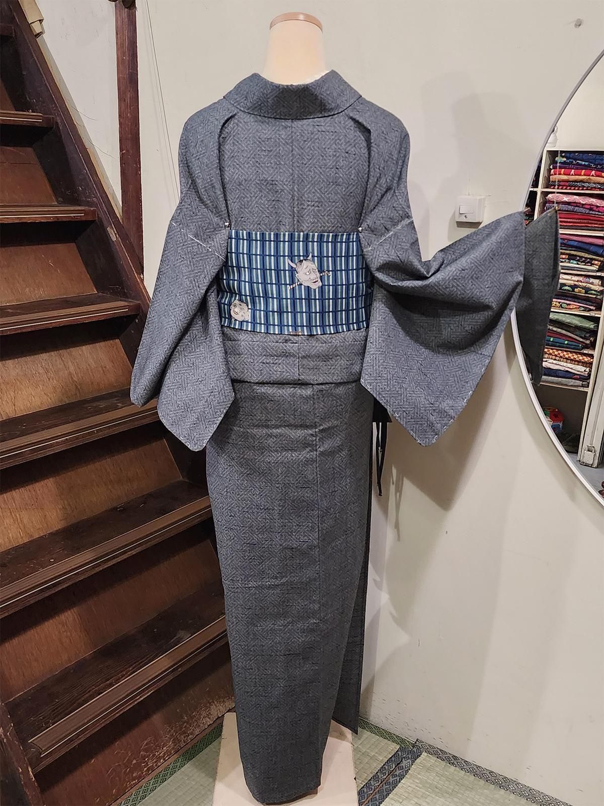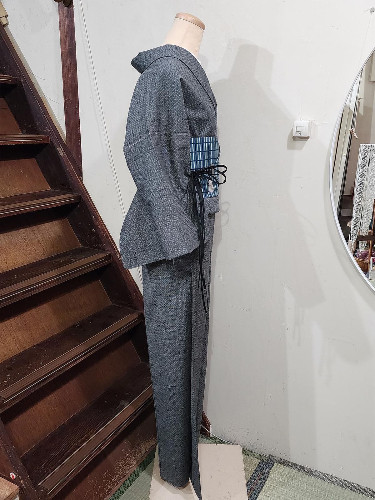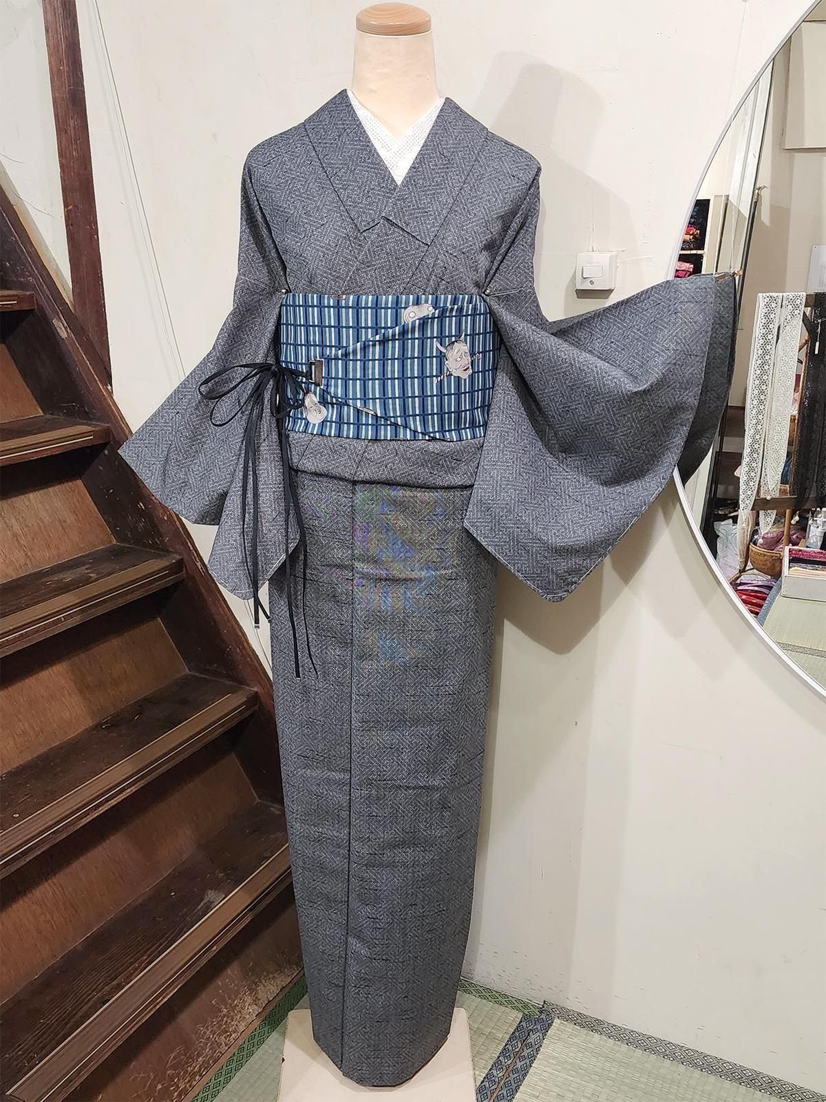 メランジグレーに紗綾形文様格好良いウール紬単着物 SOLD OUT 販売価格 9,800円(税込10,780円) 在庫数 在庫無し シックなグレーに、繊細な紗綾形の幾何学模様が浮かぶ、ベーシックで格好良いウール単着物 デザイン: 細かな絣のドットで組み上げた紗綾形文様が端正かつ粋。黒のネップが奥行きのある表情を添え、シンプルでいて、さりげないセンスの良さを感じます。 印象: 端正で知的。メランジ調のグレーが落ち着きを添え、ユニセックスに着こなしやすい一枚です。シンプルな帯をあわせてもさまになり、個性的な帯やアートなデザインの帯もおしゃれにきまり、こなれ感のある大人のカジュアルコーデを作り出してくれます。 素材・着用感: ざらりとした手触りの、所々に紬のような節感のある中厚のウール地で、シワになりにくく、ご自宅で気軽にお洗濯できる扱いやすさも魅力です。 季節・シーン: 裏地のない軽やかな単仕立てですが、ウールなので真冬も暖か。暑さが落ち着いた初秋から春までスリーシーズン活躍。カジュアル向きのお着物で、街歩きや旅行、雨の日のお出かけや気軽な食事会まで幅広く楽しめます。 コーデ提案: 紺や青系ストライプ帯でシャープに、白や生成の帯で品よく。柄×柄のコーデもほどよく受け止めてくれます。 着物の種類:ウール着物 / 単仕立て / 織模様 ウール着物の魅力については下記の特集ページでもご紹介しています。ぜひご覧ください。 姉妹屋イチオシアイテム!ウール着物のススメ 仕立て: エリはバチ衿で手縫い仕立てです。 ※手縫いかどうかについての判断は、スソまわりとソデまわり、ソデ付け、脇線の縫い目で確認しております。それ以外の部分ミシン縫いの場合は見逃しがあることがございますので、ご了承ください。 サイズ(単位:cm) 身丈160.5cm 裄丈65.5cm(縫代5cm) 袖丈47cm(縫代3cm) 前幅23cm 後幅30.5cm 目安:身長 155.5cm〜165.5cm 前後の方向け トール丈 体型により個人差あり 着物サイズについて サイズなどのご相談はLINEでお気軽に! 発送日: 5営業日以内に発送いたします。 丈について: 肩山から裾までの長さです。 裄について: 裄の項目で、裄出しが可能な場合は 「(縫代◯cm)」 と表記しています。※縫代の記載がない商品は、裄出しの余裕がない、または袷仕立てのため判別できないものです。 実測サイズ: 平置きでの採寸のため、多少の誤差が生じる場合があります。 状態 写真に写らない若干の小汚れや小キズ、うっすらとしたヤケ, アクやクスミがあります。 昔のお着物に慣れた方であれば十分お召しになっていただけるかと思います。 検品にはできるだけ注意を払い、シミ・汚れ等を記載しておりますが、微小の汚れ等につきましては見落としがある場合もあります。ユーズド品であることにご理解のうえご購入をお願いいたします。 胴裏につきましては、ユーズド・アンティークの着物はホシやシミが生じているものが大半のため、状態が軽度のものにつきましては記載を省かせていただいております。 当店で取り扱いしている着物の状態については、「姉妹屋について」のページの「着物の状態について」をご参照ください。 その他注意事項 この商品について問い合わせる この商品を友達に教える 買い物を続ける ツイート この商品をログピでつぶやく Yahoo!ブックマークに登録する はてなブックマークに登録する 前の商品へ 次の商品へ ページの先頭へ戻る この商品のカテゴリー ウール着物・木綿着物 商品カテゴリー一覧 おすすめコーディネート ベルタル・オビ(般若クロコブラック) 13,800円(税込15,180円) アッシュベージュにラメ糸きらめくダマスクアラベスク美しい開き名古屋帯 8,800円(税込9,680円) *ア・カセテ*草履(Lサイズ)マヌルネコ・グレーストライプ 7,900円(税込8,690円) ↑ページの先頭へ戻る↑ 全部見る>> 商品検索 すべての商品から セール 50%OFF オリジナル帯 オリジナル草履 ウール着物・木綿着物 袷着物 単着物・サマーウール アンサンブル 付け下げ・訪問着など単品 付下げ・訪問着・振り袖セット 半幅帯・つくり帯 帯 袋帯・洒落袋帯 羽織 コート ショール 雑貨・小物 Kurumuruk−シルクナイトキャップ 浴衣 夏着物 スリーウェイ夏着物浴衣 単羽織・夏羽織・レースショールなど 単帯・夏帯 売約済み商品 メルマガ登録・解除
