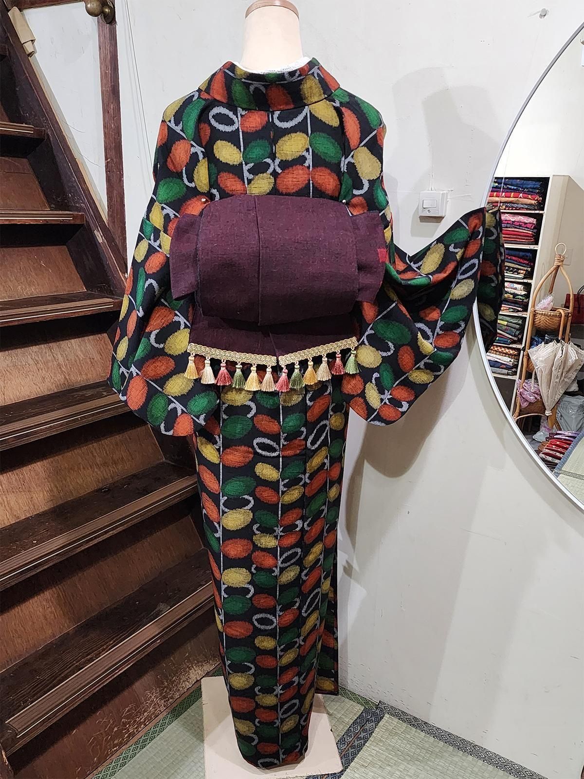 - コーデ提案: テラコッタやブラウン系の帯で秋冬にぴったりなウォーミーなスタイルに。グリーンやイエローの帯で着物の柄とのマッチを楽しんでも素敵。黒やグレーの帯でシンプルに、お着物の柄の魅力をひきたたせてもGOOD!