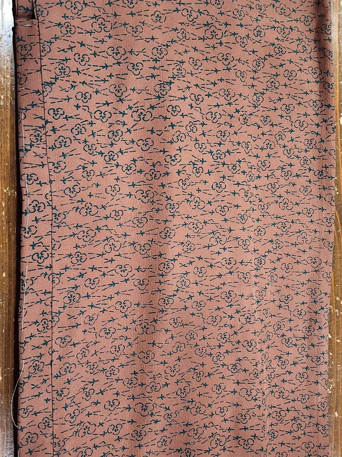 胡桃色に深緑の松と松葉が一面に染め出された小紋柄が軽やかな正絹ビンテージ羽織