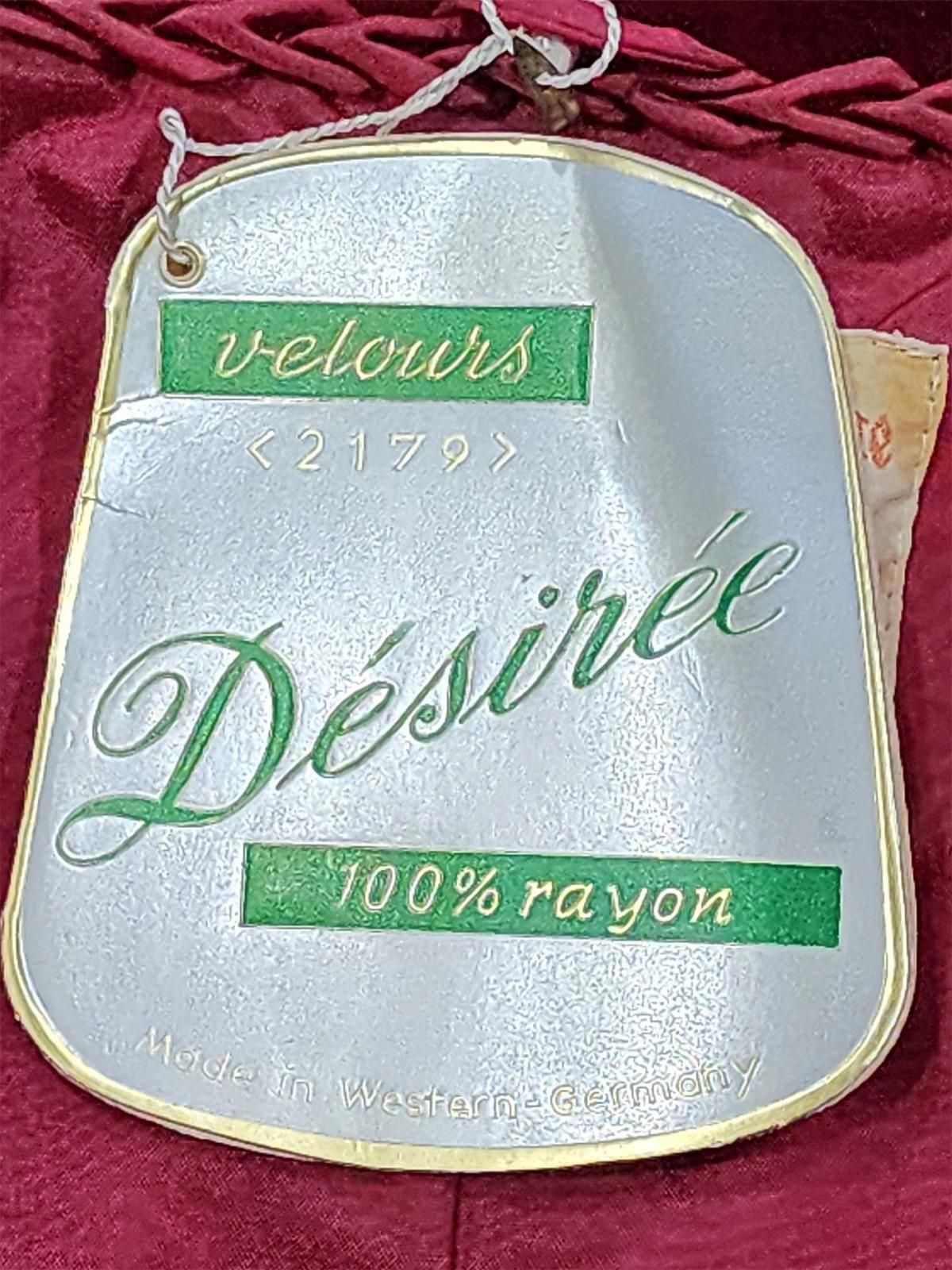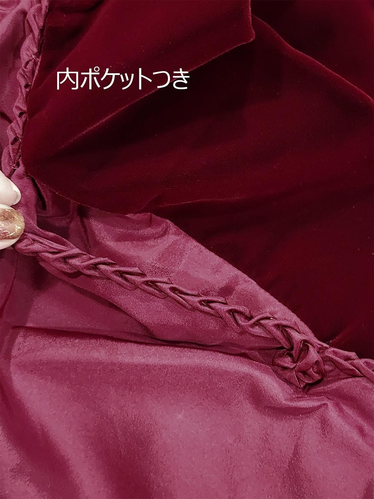 - デザイン:ビンテージベロアならではの深みのあるバーガンディールージュのカラーと上品な光沢にうっとり。50年代クチュールを思わせる完成度の高いシルエットに、愛らしさとエレガンスを両立するモードな衿がアクセントになった上質なベロアコート。便利な内ポケット付き。