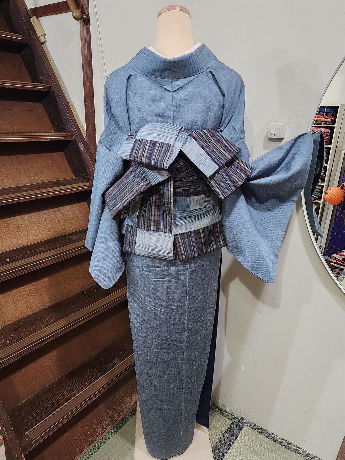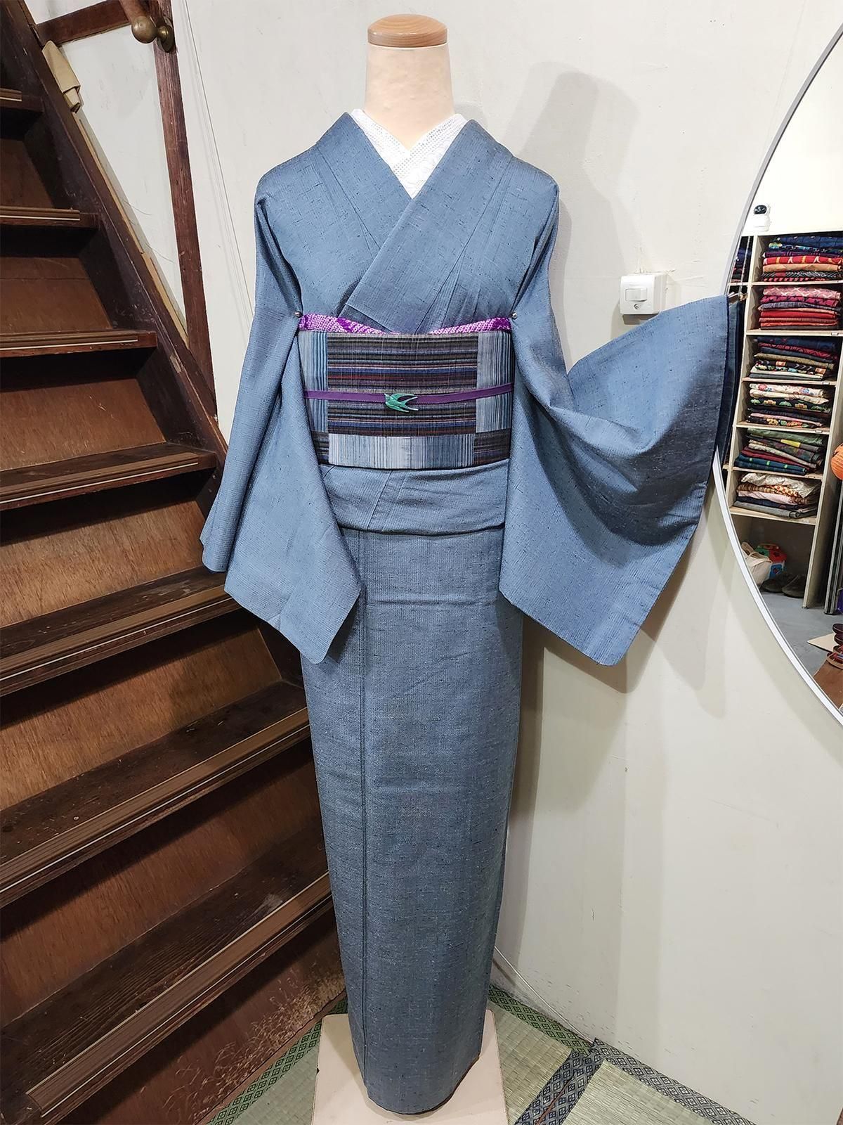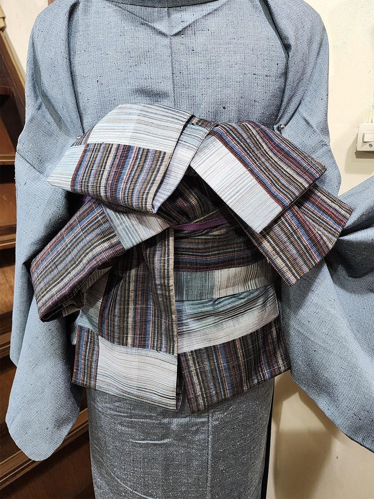 - 素材・着用感: 正絹紬ならではの程よい張りと硬さ。軽やかで結びやすく、形もきれいにきまります。