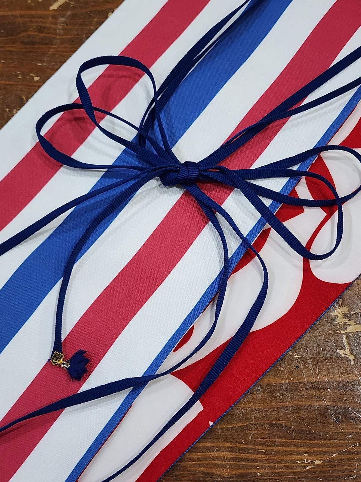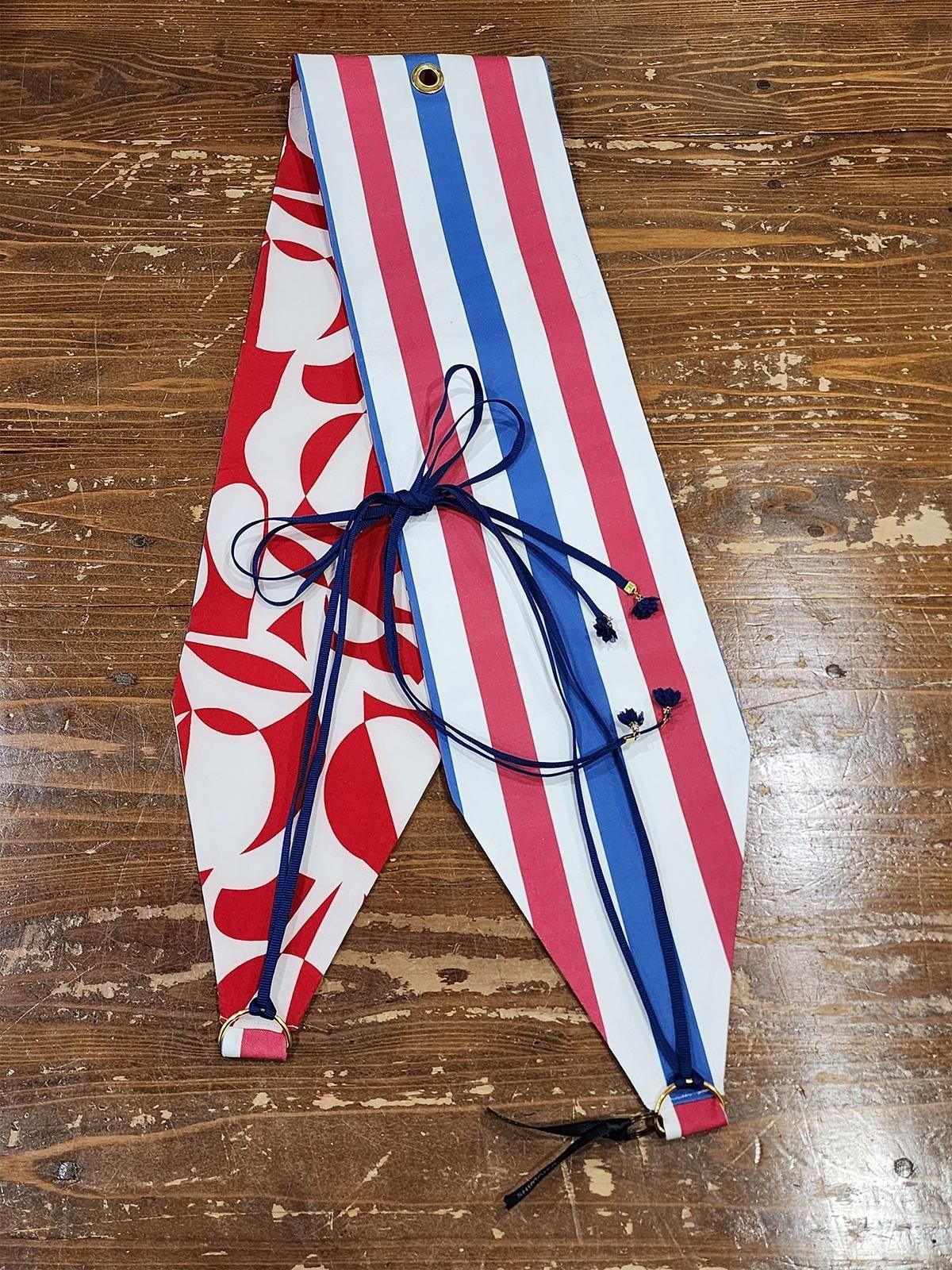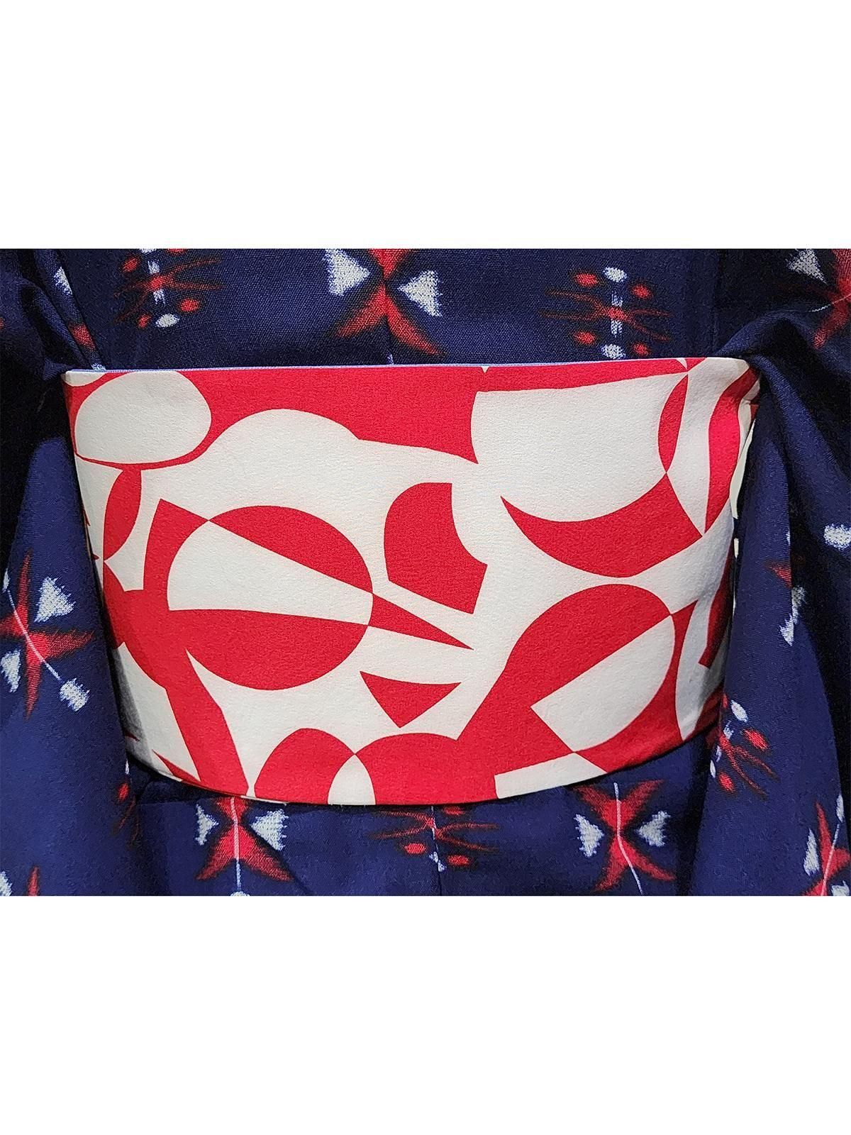ベルトみたいに“通して結ぶだけ”。フレンチポップなトリコロールのボーダーパターン&モダンアートな赤の抽象デザインのリバーシブル「ベルタル・オビ」。(※紐の長さを変更した改良バージョンです)