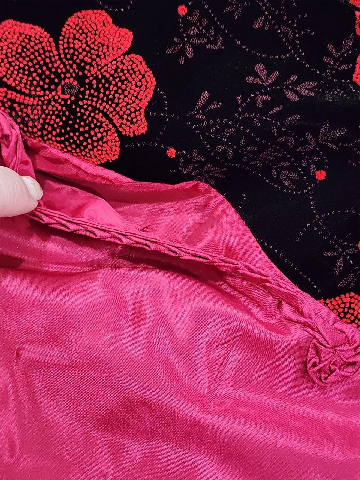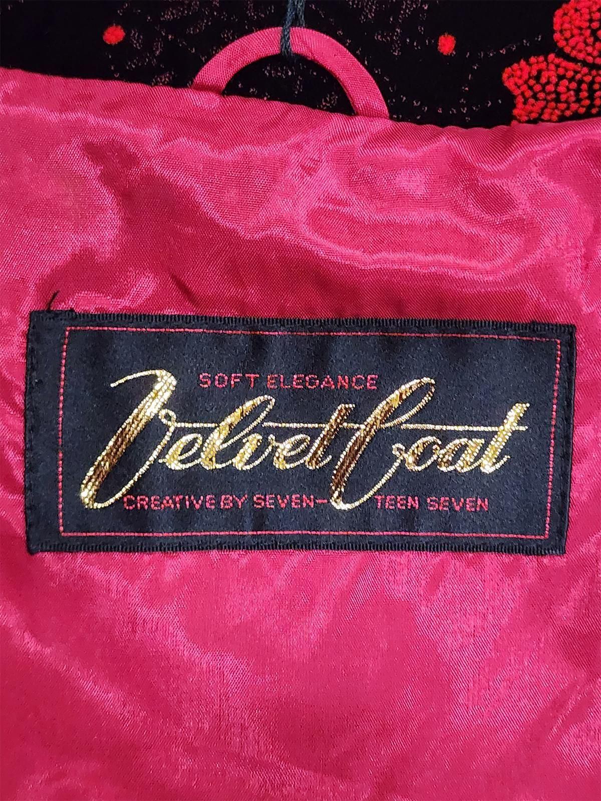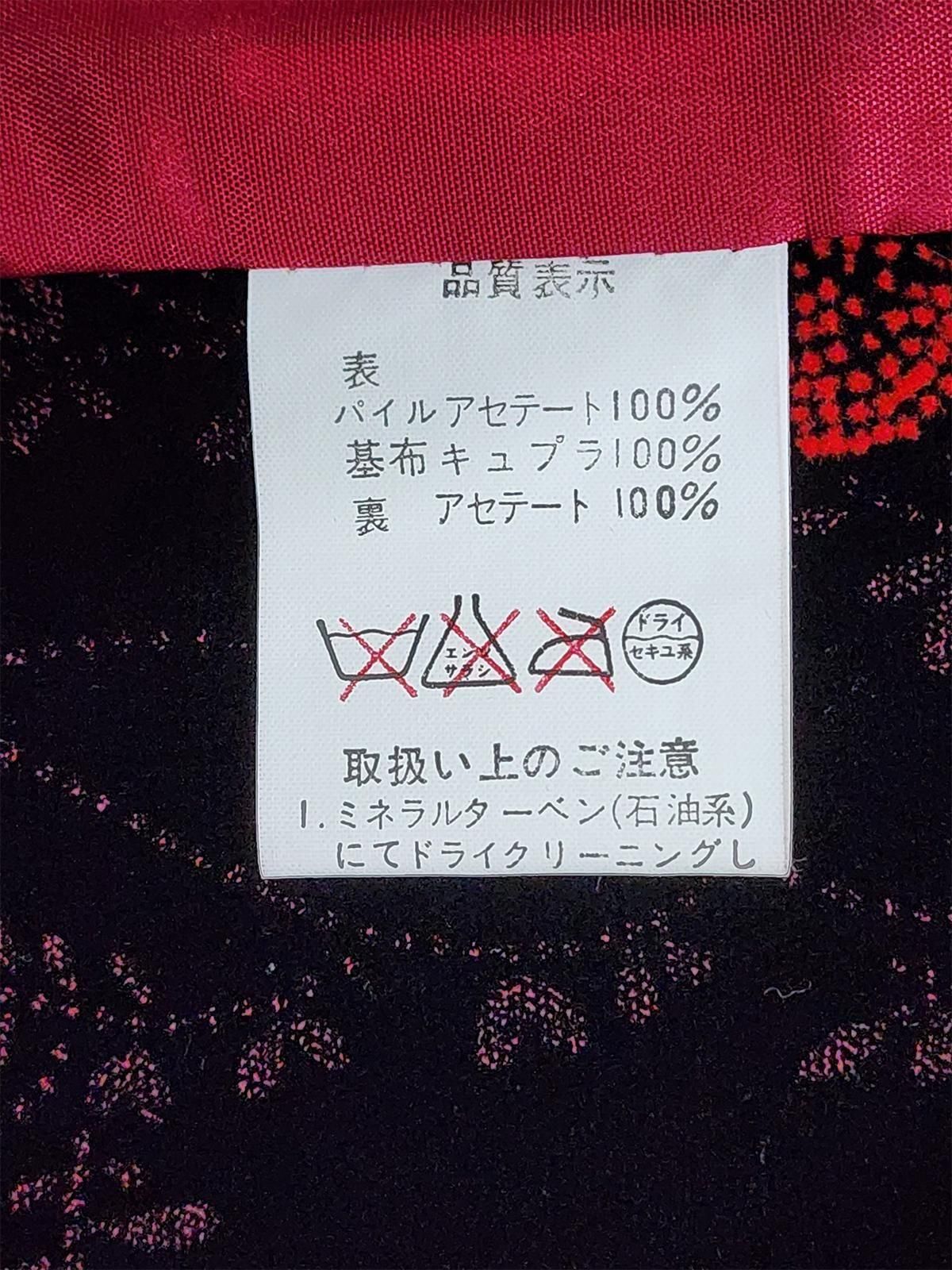 つややかなブラックベルベットに、点描美しいスカーレットの花が咲くビンテージ着物コート
