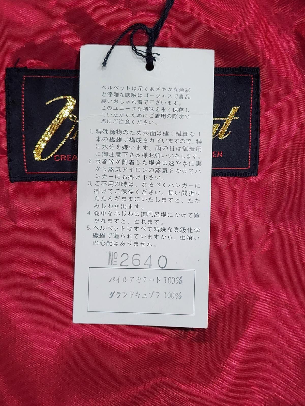 - 素材・着用感: ややざらっとした手触りの上品で深みのある光沢がでた高級ベルベット。パイル:アセテート100%、グランド:キュプラ100%