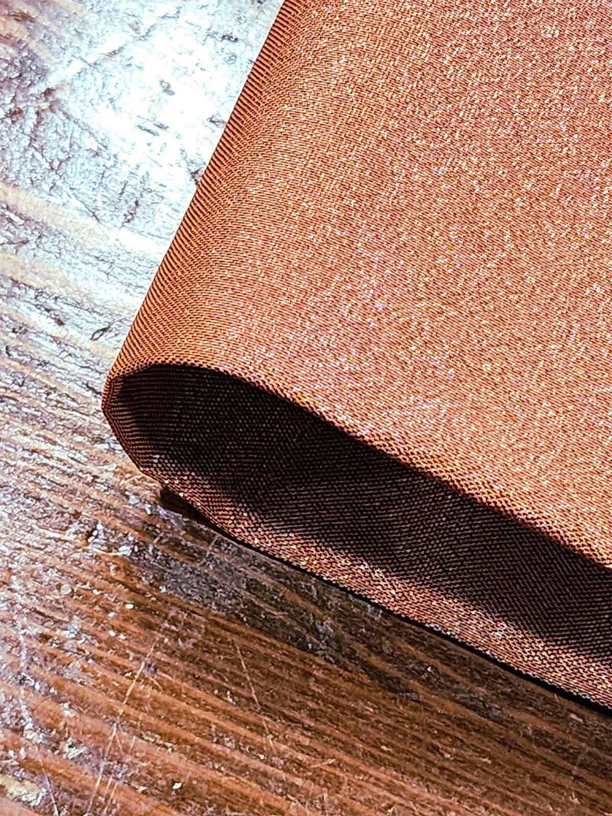 きらきらときらめくシャイニーなオレンジがコーディネートにドラマチックでアートな存在感をプラスしてくれるリファイン半幅帯