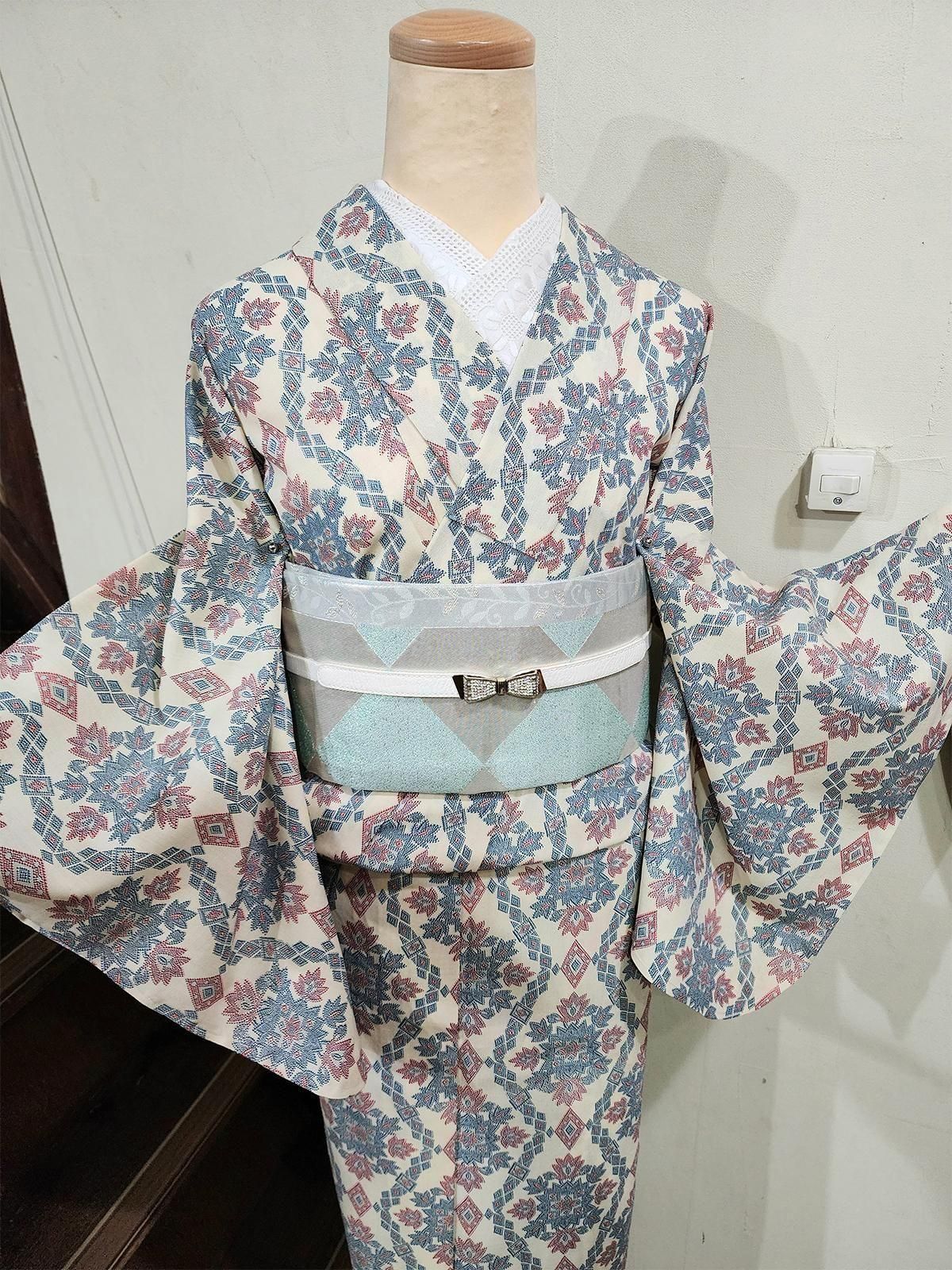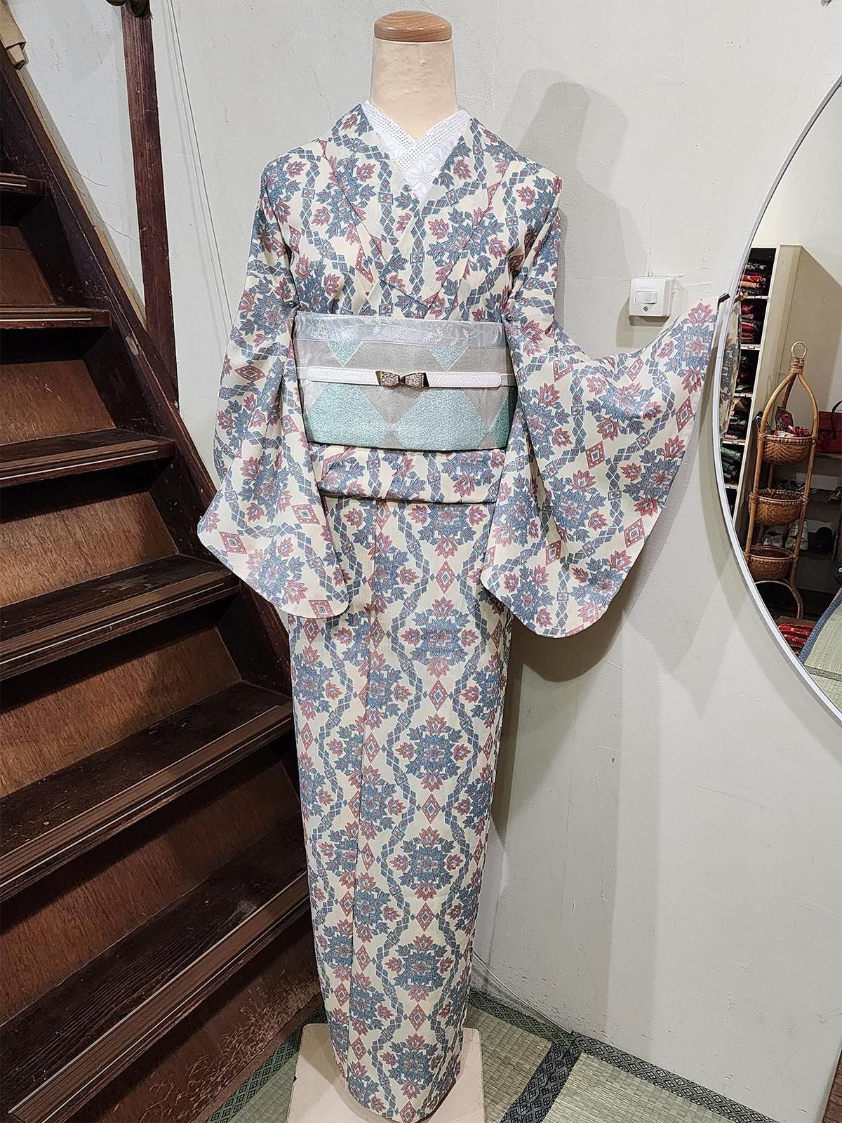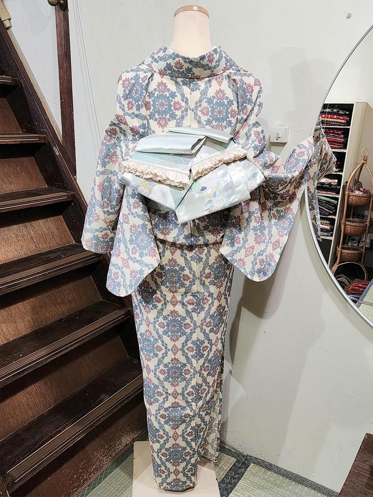 - コーデ提案:。淡いグレーやブルー、白や生成りの帯で透明感を引き立てたり、ブラウンやルージュの帯で温もりを添えても素敵。パステルカラーの帯をあわせるとはかなげでイノセントな雰囲気がひきたちますし、ブラックやボルドーなどの深みのある色でひきしめても素敵です。