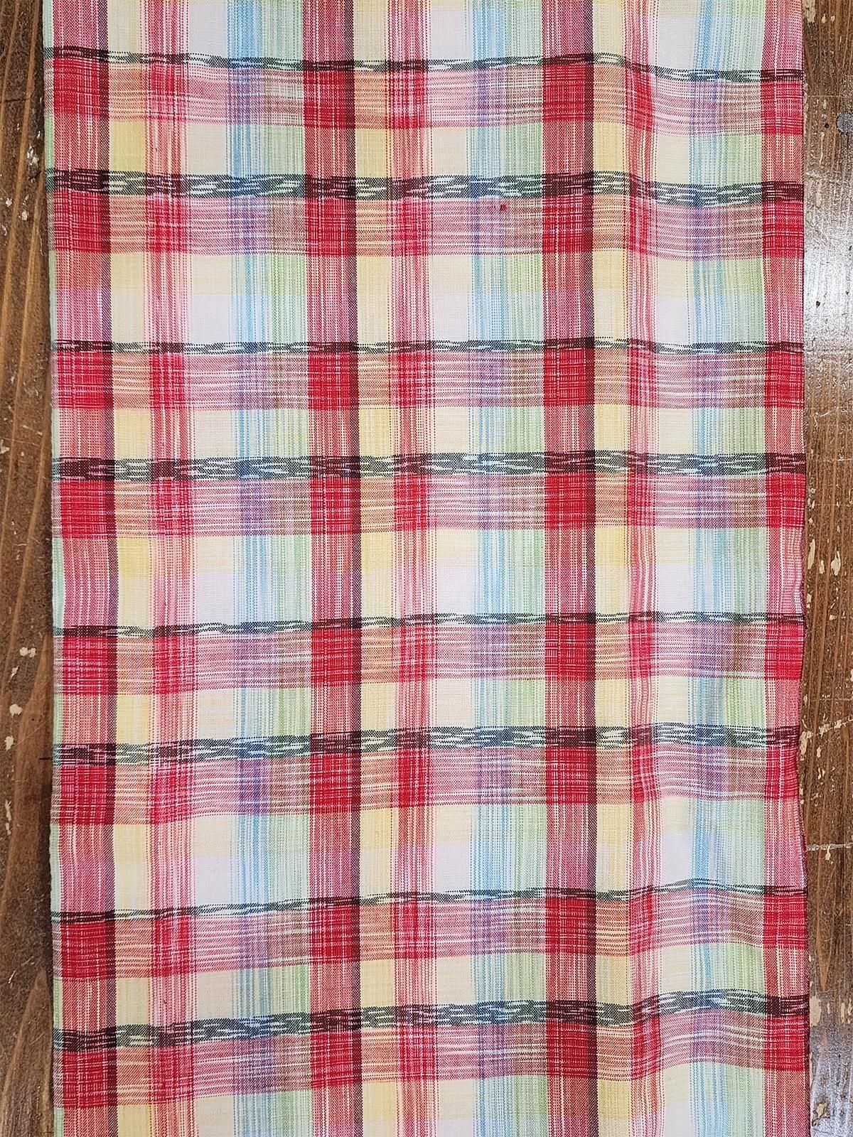 - デザイン: アイボリーとルージュレッドをベースに、イエローとブルー、レモンイエロー、ハーバルグリーン、スカイブルーなどのパステルカラーを織り込んだチェックパターンがとびきり素敵な一枚。ところどころに効かせた黒のラインが全体をきりりと引き締めてくれます。マドラス調の明るいカラーと色鉛筆で描いたような自然なゆらぎのあるラインが美しく調和したチェックパターンが心ときめくコーディネートを作り出してくれます。