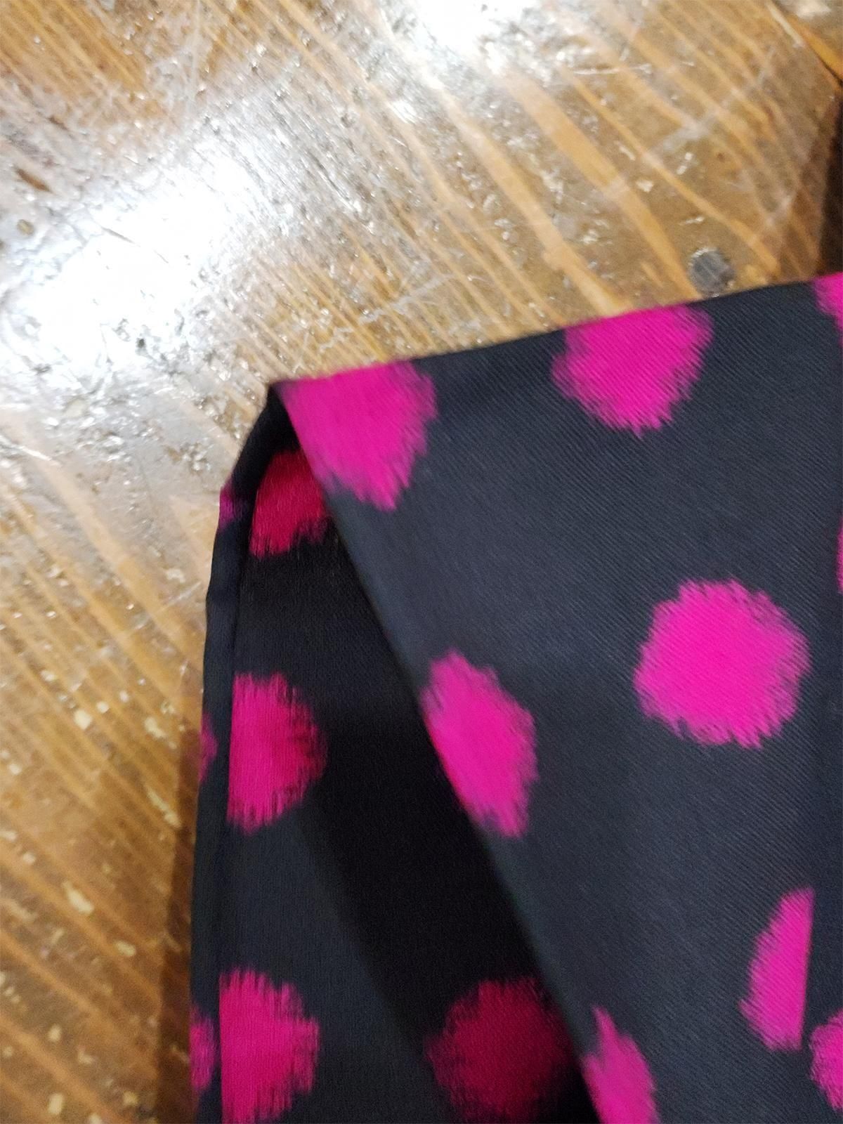 - デザイン: ブラックベースにビビッドなピンクルージュの大判ドットが映えるモダンデザインにときめく一枚。織りの陰影がドットに表情を与え、どの角度からも可愛く映えます。