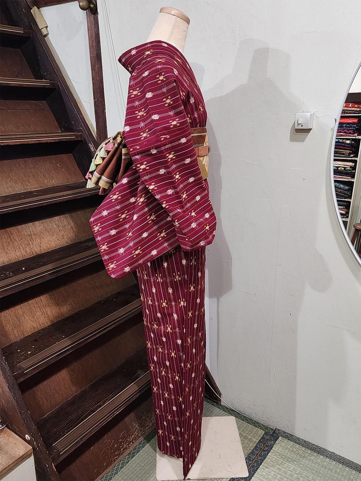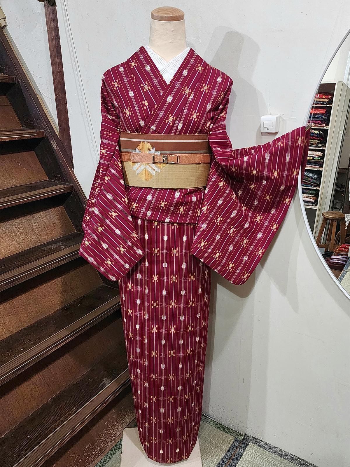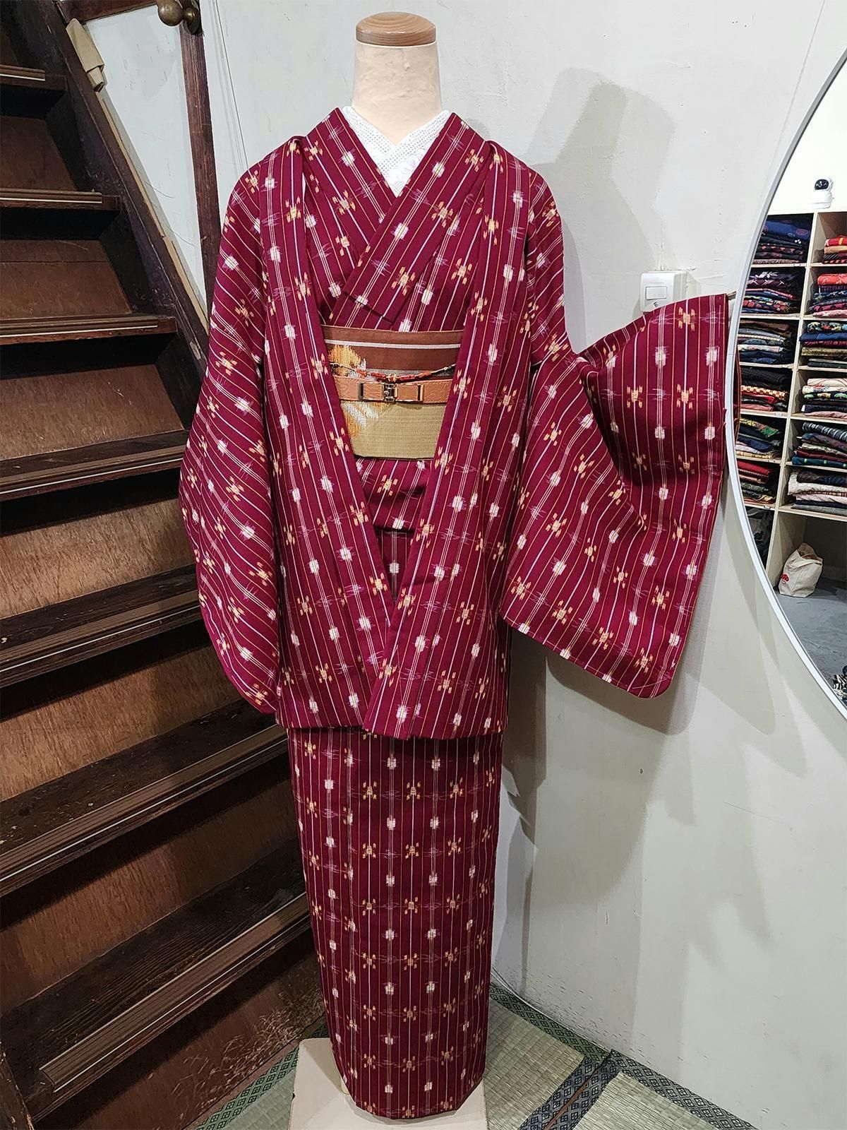 - 素材・着用感: ざらりとした手触りの中厚のウール地です。シワになりにくく、お着物はご自宅でお洗濯していただけます。