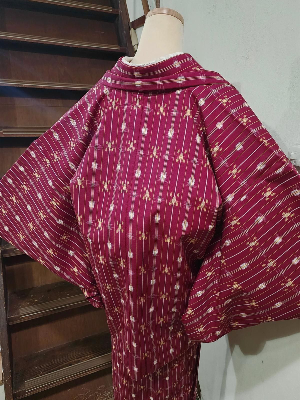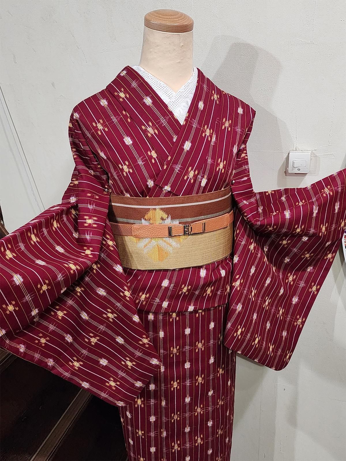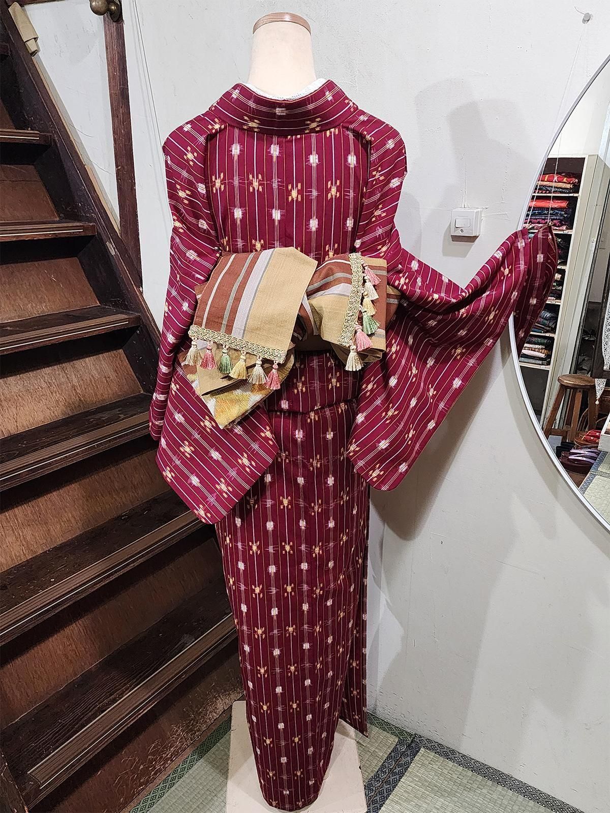 - 素材・着用感: ざらりとした手触りの中厚のウール地です。シワになりにくく、お着物はご自宅でお洗濯していただけます。