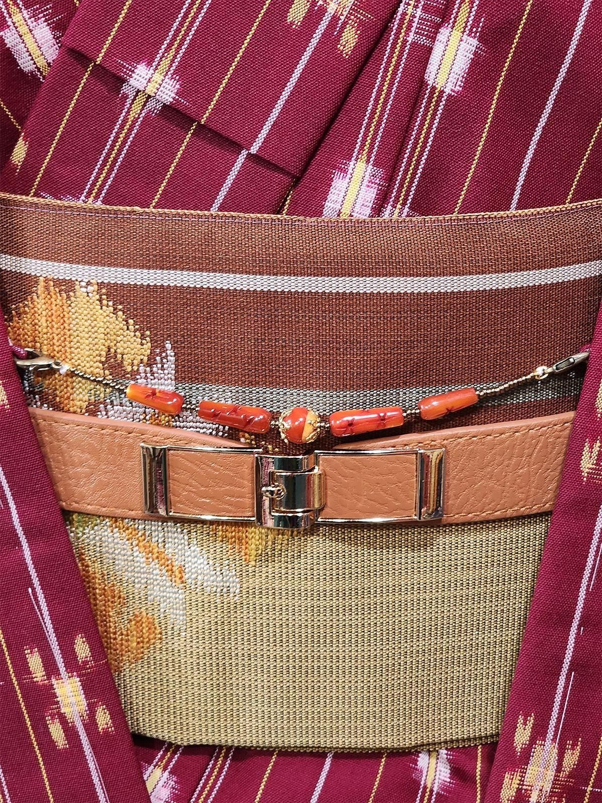 - コーデ提案: からし・ベージュ・キャメル系の帯でクラシックに、黒や白の幾何帯でモダンに。レザー小物やブーツとも好相性。