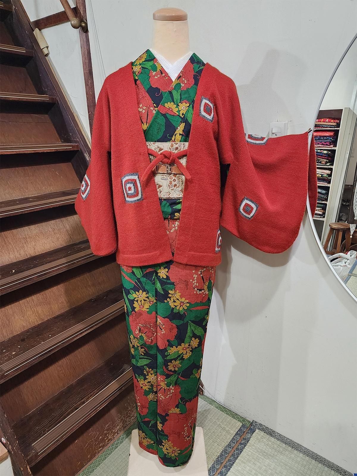 - コーデ提案: 花柄やボタニカルなど華やかな着物に重ねたら北欧ファブリックのようなアートな雰囲気に。昭和レトロなデザインにもベストマッチ。無地や縞などのクールなアイテムにあわせて、ミッドセンチュリーな雰囲気をひきたたせてもGOOD。