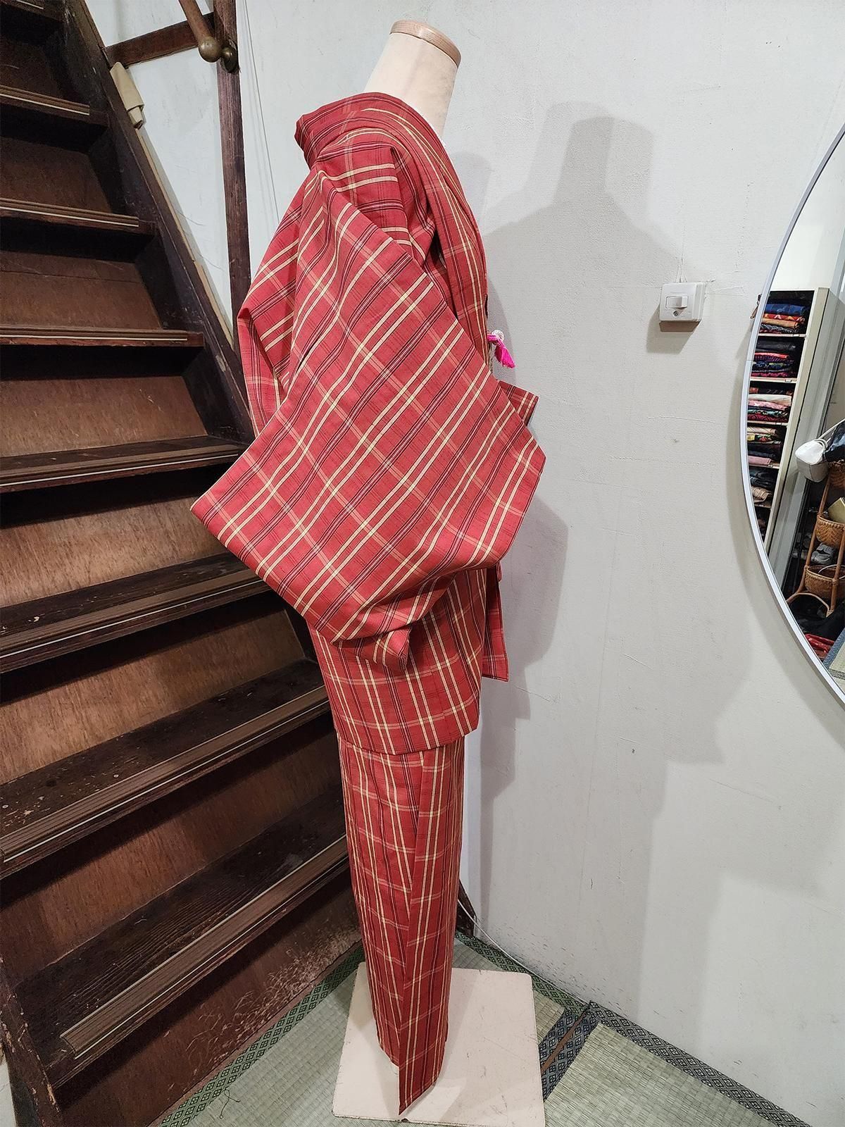 - 素材・着用感:ざらっとした手触りの中厚のウール地です。お着物はご自宅でお洗濯していただけます。