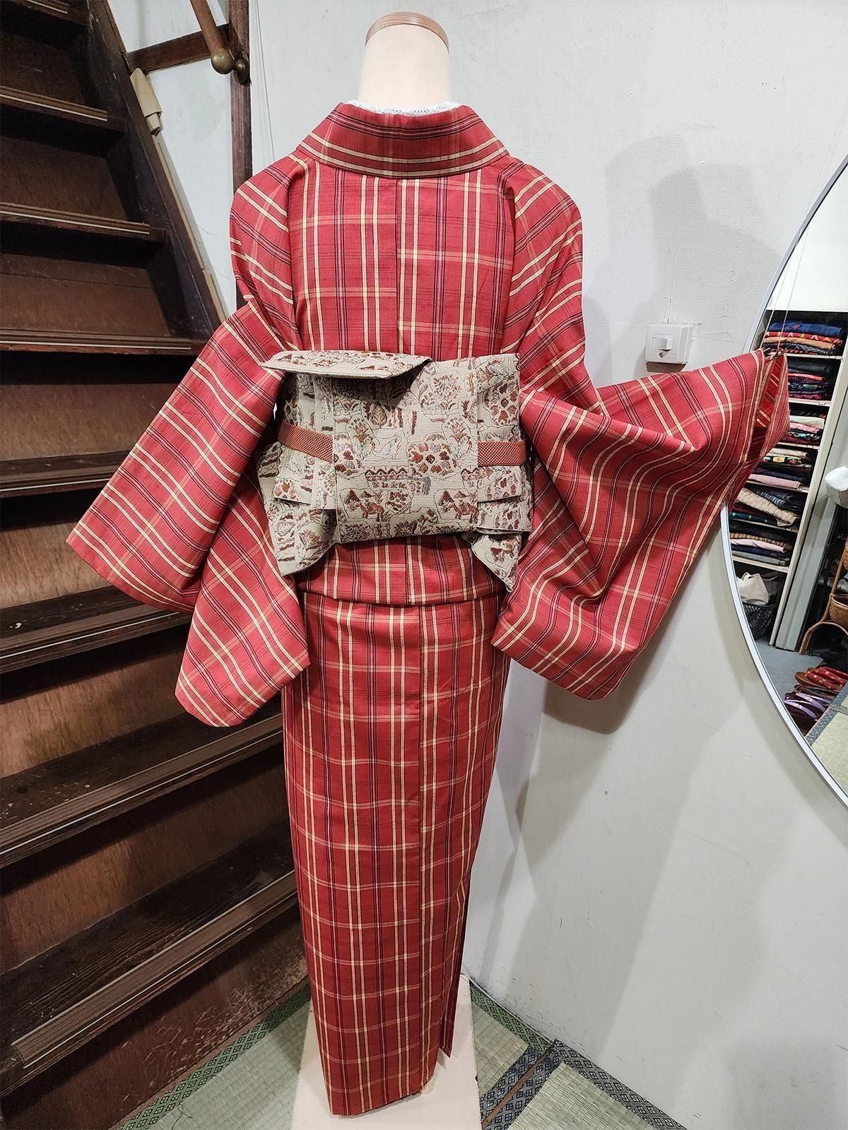 - 季節・シーン: 単仕立てのウール着物は、秋口から春先までのスリーシーズンに活躍。羽織を重ねれば真冬も心強く、カフェ巡り、街歩き、観劇や旅行など普段のおしゃれからちょっとしたお出かけまで幅広くお楽しみいただけます。