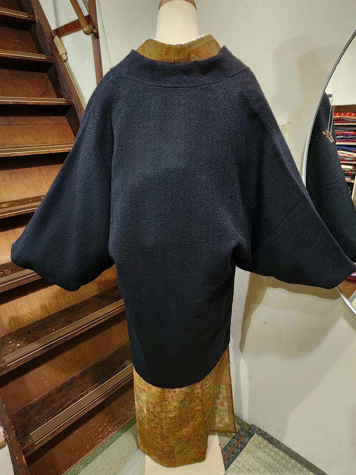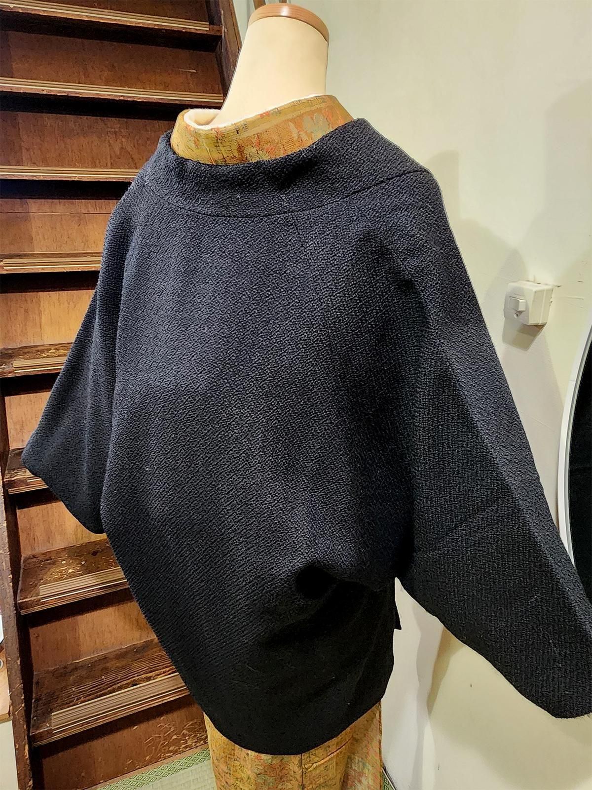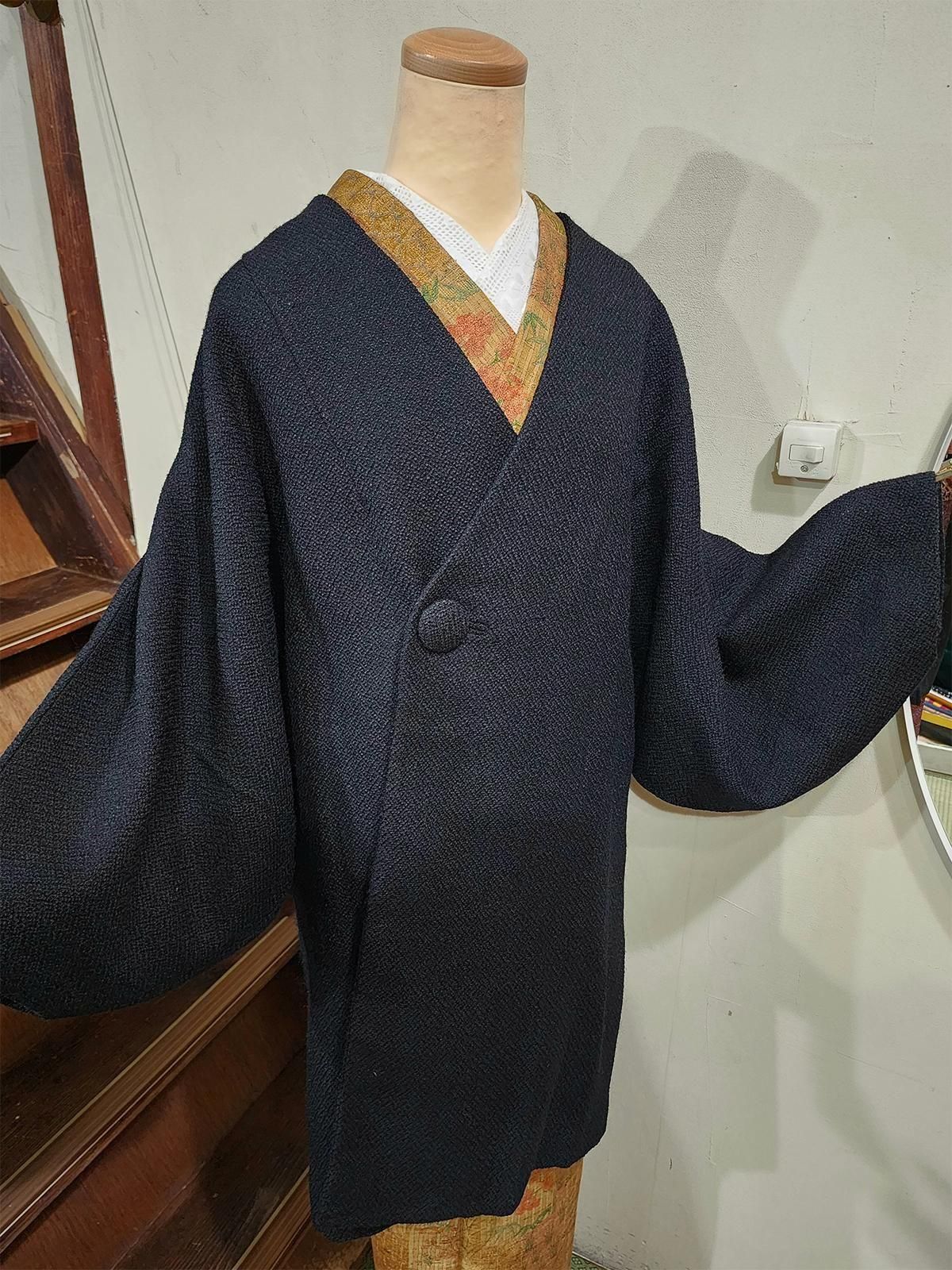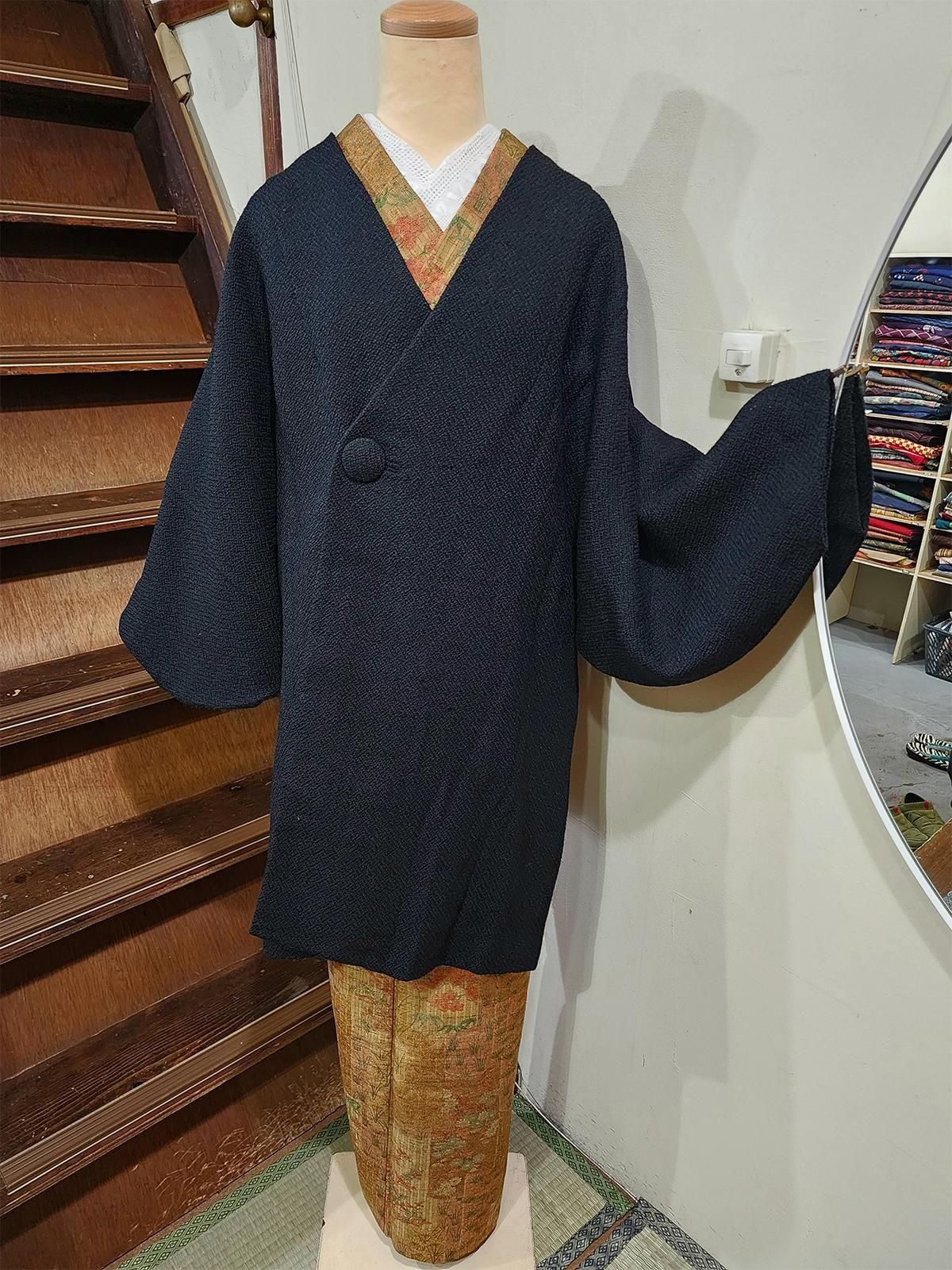 - コーデ提案: レトロにもモダンにも、モードにもナチュラルにも幅広いコーデにマッチ。あわせる着物の色柄を選ばない万能アウター。すっきりとしたノーカラーなので、ショールやマフラーなどを重ねるのにもぴったりです。