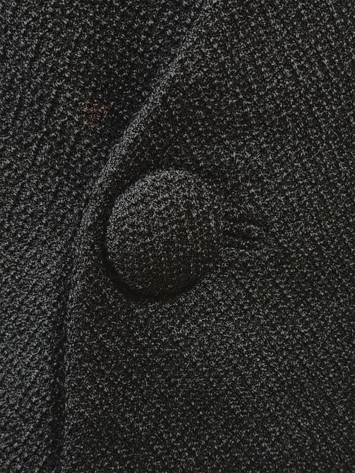 - デザイン: 細かな凹凸のある立体的なテクスチャが、シンプルなシルエットのブラックコートに奥行きと陰影を添える軽やかかつ洗練された着物コート。着物の衿に美しく沿うすっきりとしたノーカラーに、くるみボタンを一つ効かせたミニマルなデザイン。