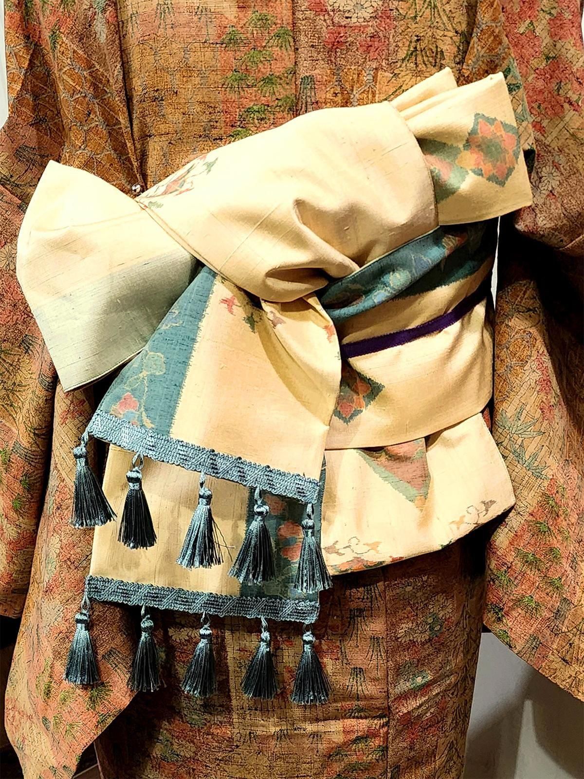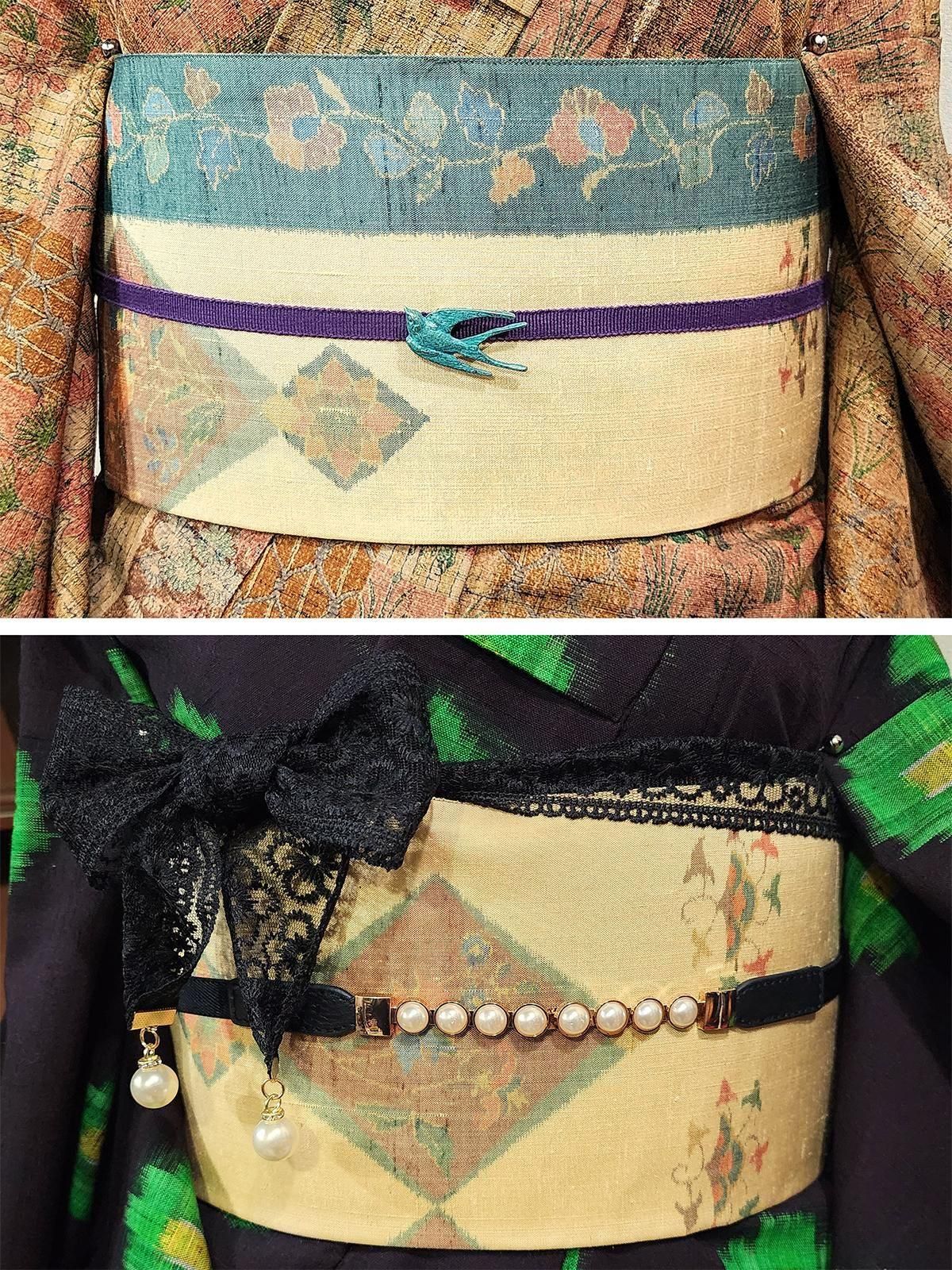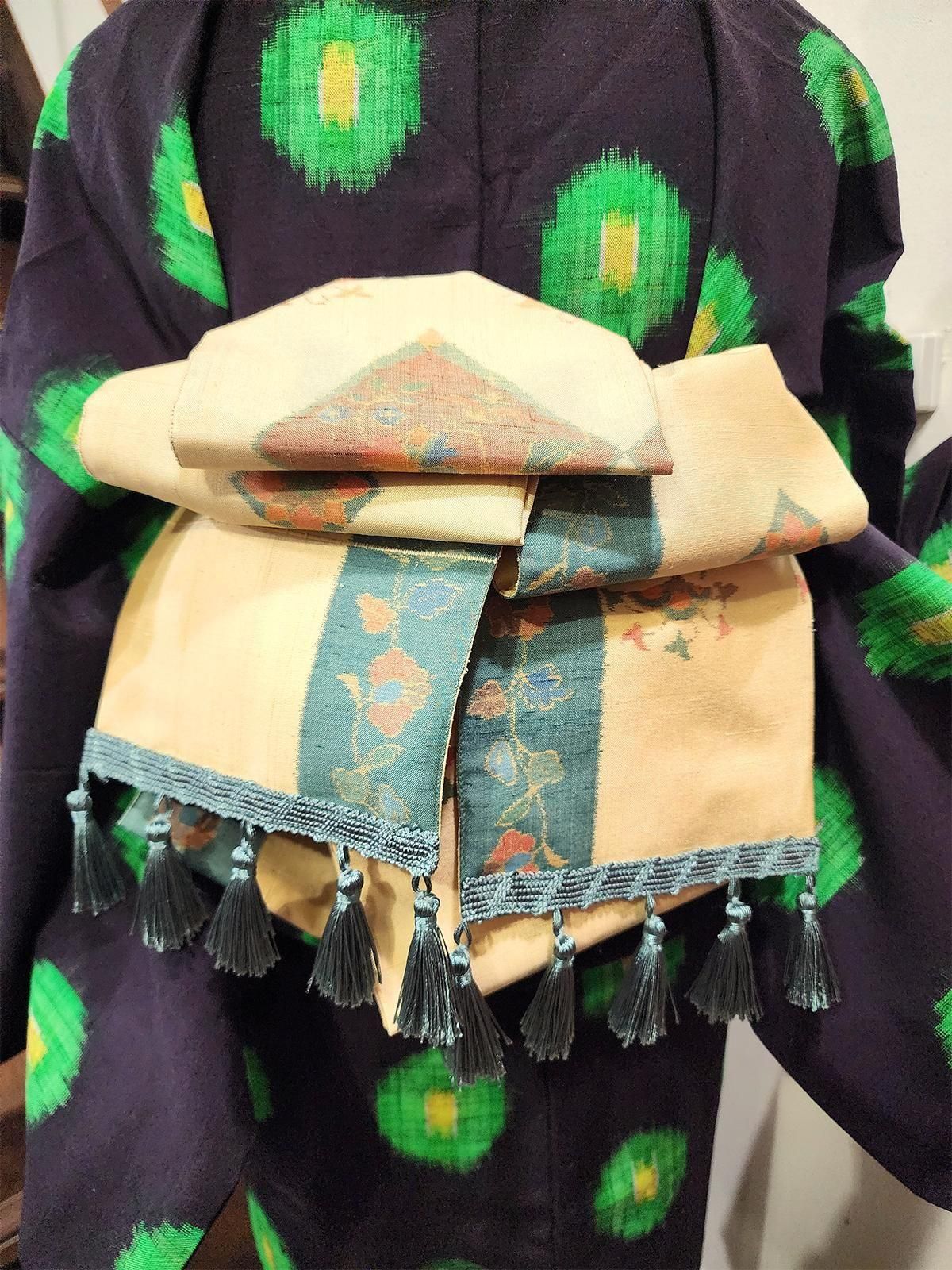 - 着物の帯ならではのしっかりとした素材で、浴衣にもお着物にもマッチしてくれ、一年を通して楽しんでいただけ、特別な日も、ふだんの日も、装いにときめきを添えてくれます