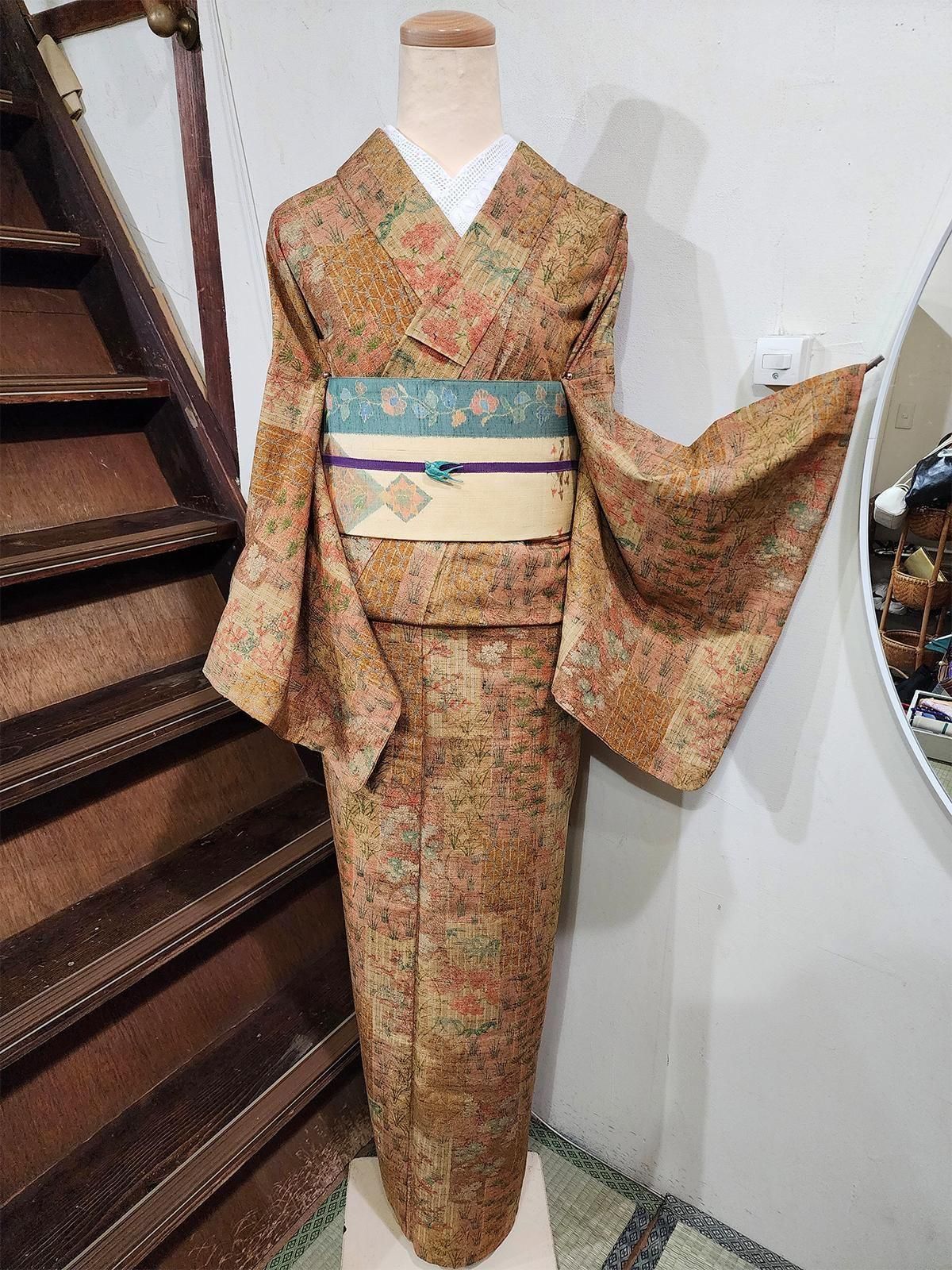 帯の種類:半幅帯 / 正絹紬(ビンテージ帯リメイク)
