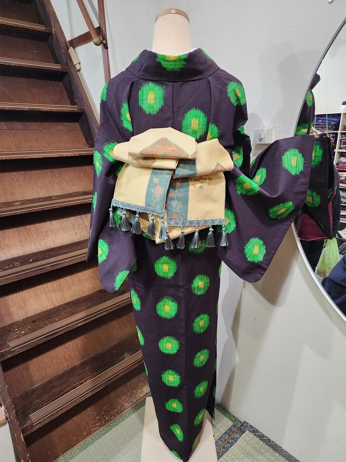 - コーデ提案:ウールや正絹紬、小紋まで幅広くマッチ。更紗や正倉院文様などの着物にあわせたロマンチックな装いによくあいます。無地や縞、格子模様などベーシックな着物にあわせた帯が主役のコーデにもぴったりですし、華やかな色柄のお着物にあわせてもすっきりときまります。ロングサイズなので、華やかな変わり結びにも最適。後ろ姿をぐっとドラマチックに演出してくれます。