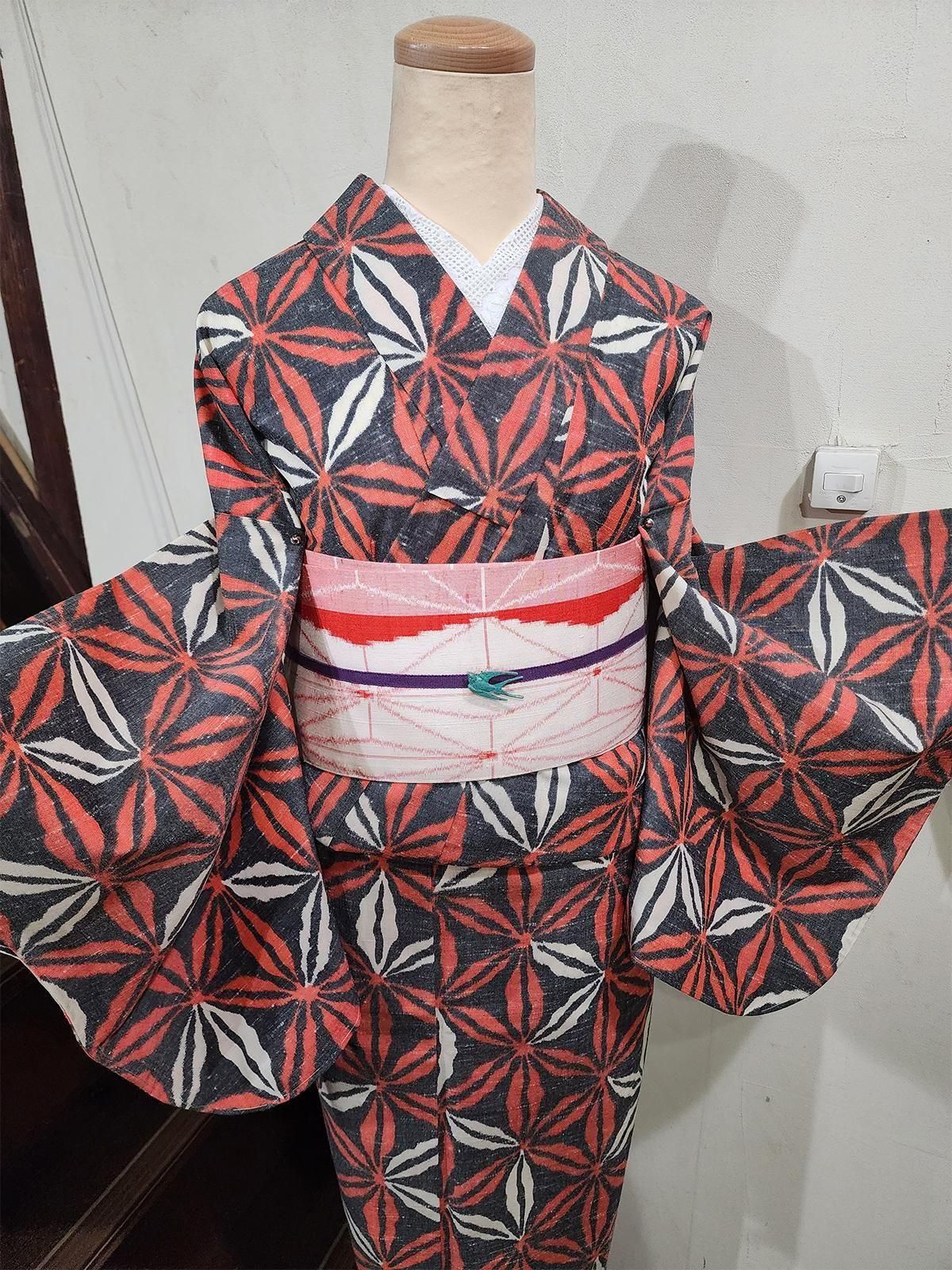 - 季節・シーン: 裏地のない単仕立てのウール着物で、秋口から春先までスリーシーズン活躍。普段のお出かけや街歩きはもちろん、カフェや旅行、イベントにも。
