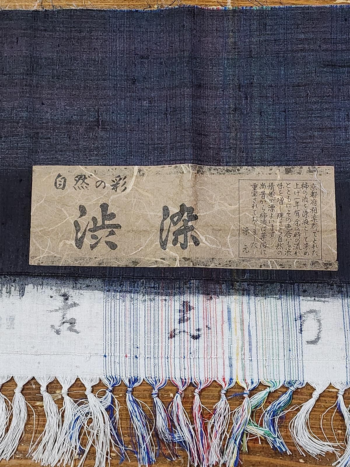 - 素材・着用感: ややざらっとした手触りの、風合のある節のでた、ほどよい張りがありますがしなやかで軽い正絹紬地。「古志乃」の商標がついています。また「京都市相楽郡でとれた柿の渋で染め上げた「渋染」で、時の流れとともに色合いも深みをまし、自然の趣を楽しんでいただけます。