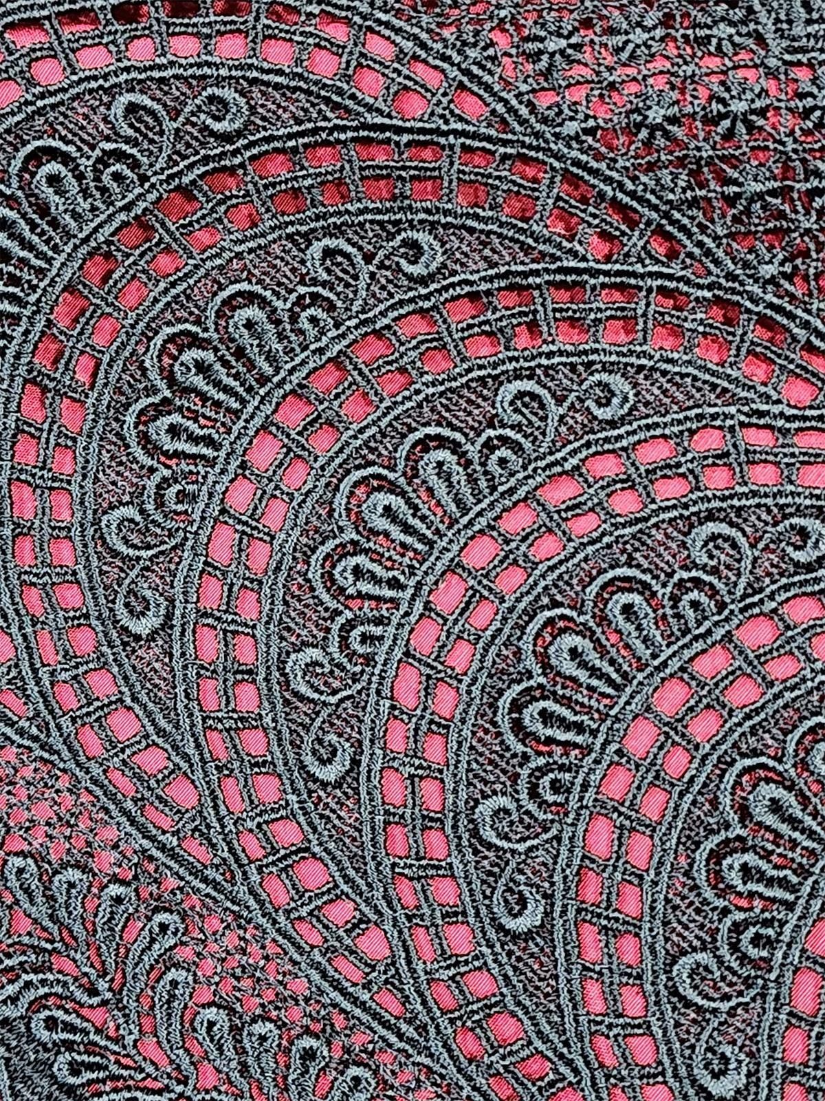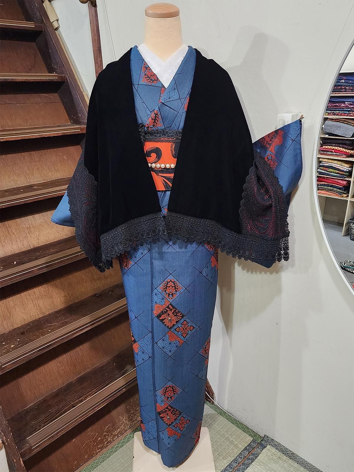 洗練された華やぎ香る、ロマンチックでいて甘くならないブラックベロア×レース素材に、赤がさりげない差し色になったショールは、幅広いコーディネートにマッチして、普段使いからパーティースタイルまで年齢をとわず大活躍してくれる便利なアイテムです。