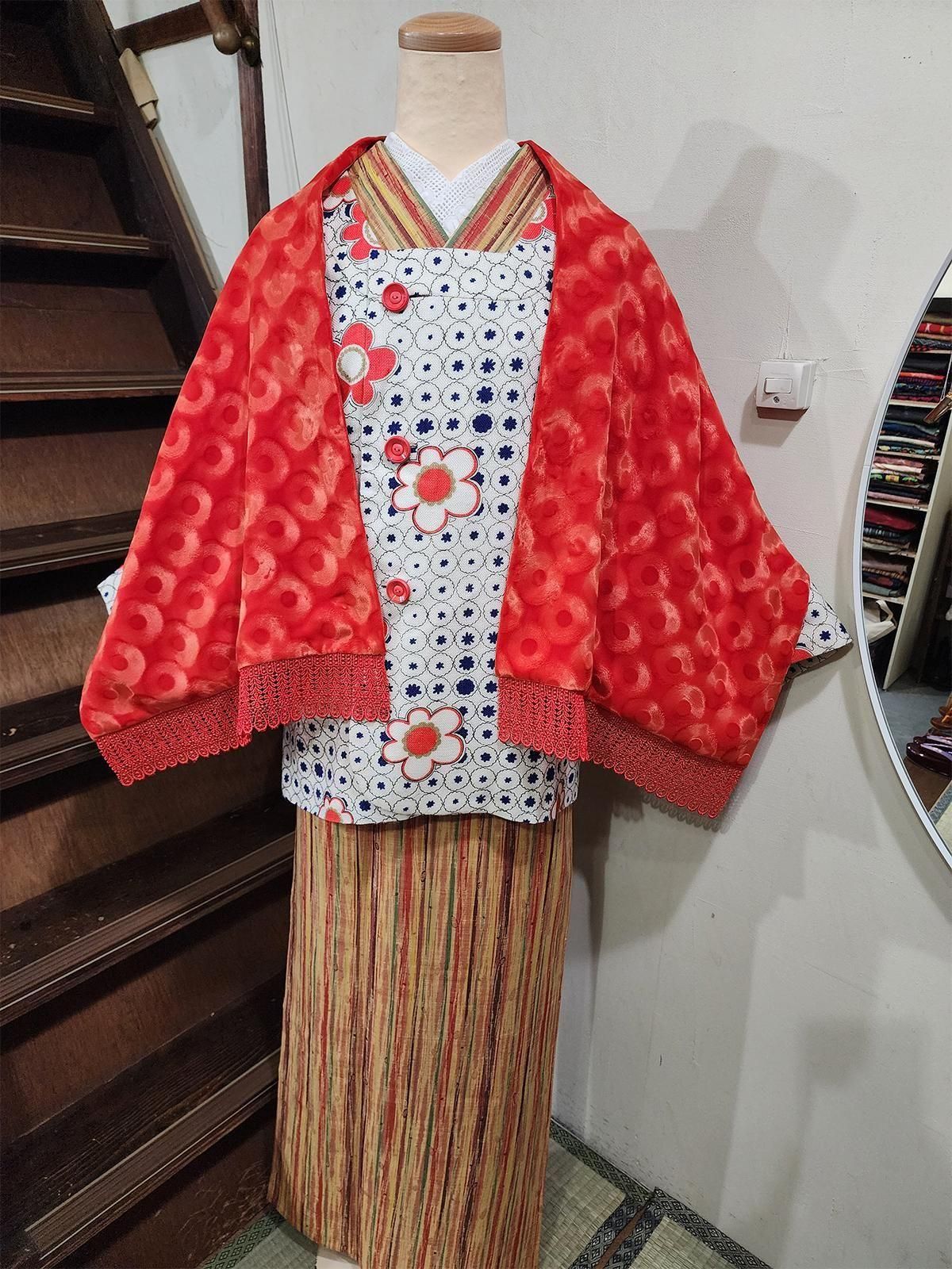リサイクル品のため、若干の小汚れや小キズ、クスミ感はありますが、リサイクルのお着物に慣れた方であれば、問題なくお使いになっていただける範囲かと思います。また、裏地にマジックの記名があります。