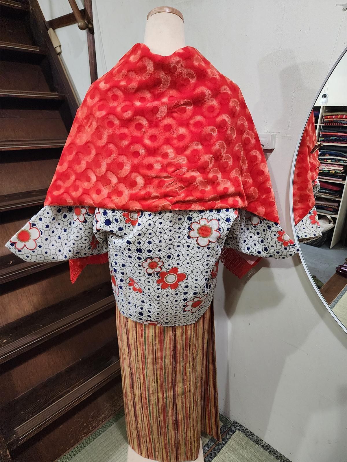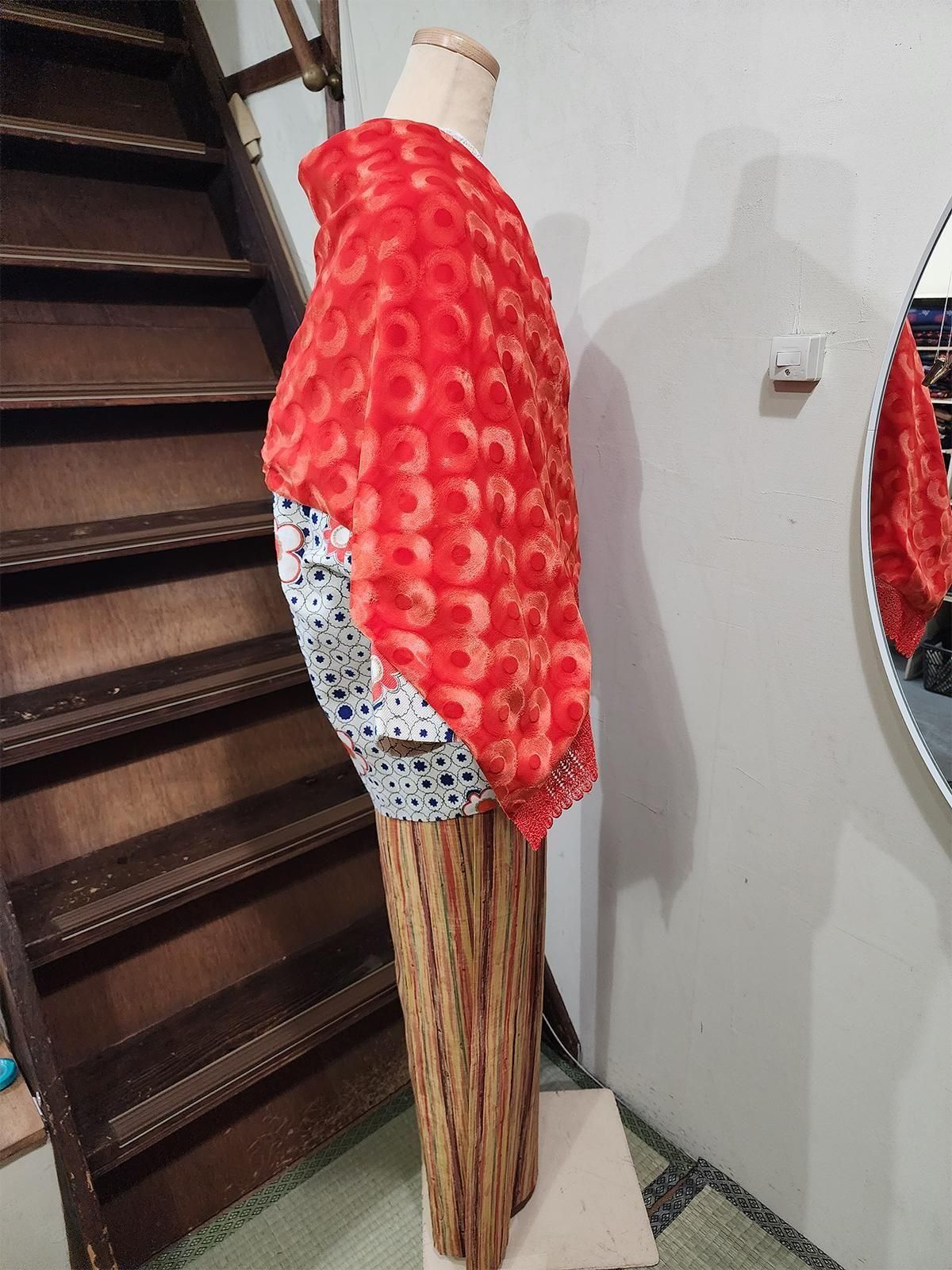 アートなサークルパターンが光の加減で浮かび上がる型押しベロアのビンテージショールです。