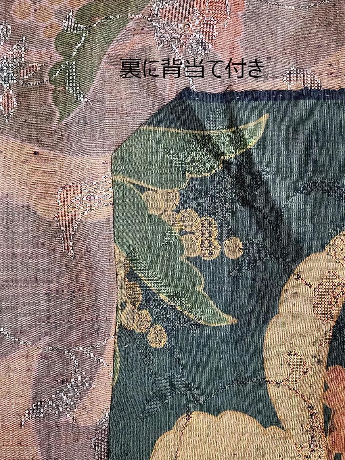 - 素材・着用感: 優美な地文様が織り出され、所々に節のある風合い豊かな生地。ウールに化繊やシルクを混紡することで毛羽立ちを抑え、耐久性を高めた高級ウール「しょうざんウール」と思われます。正絹紬とウールのいいとこ取りをしたような上質な風合いで、「ウールの女王」とも称される格別の着心地を楽しんでいただけます。