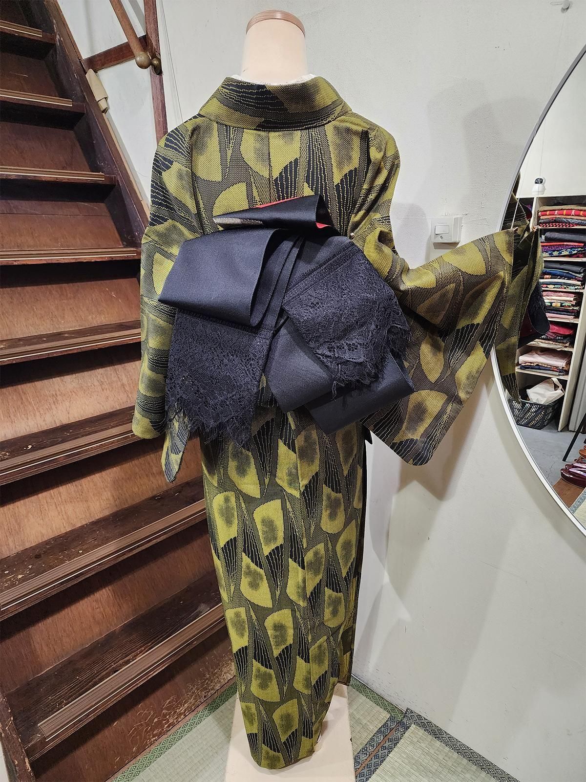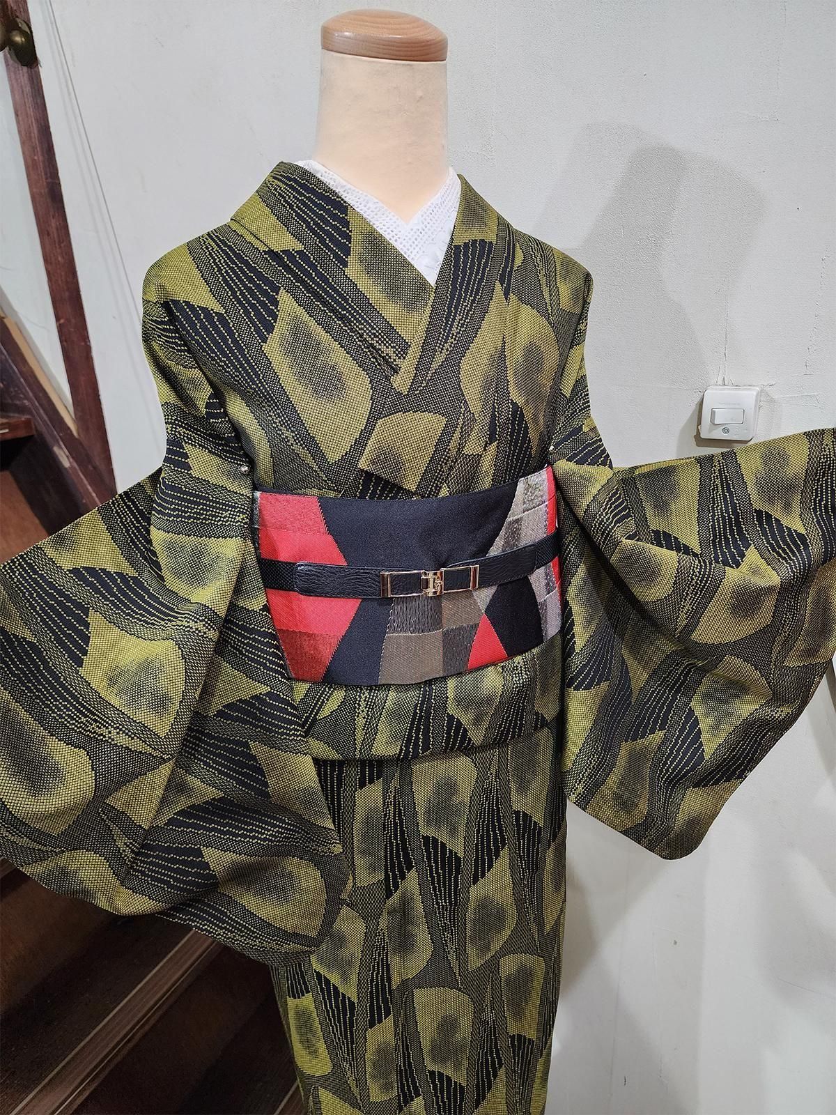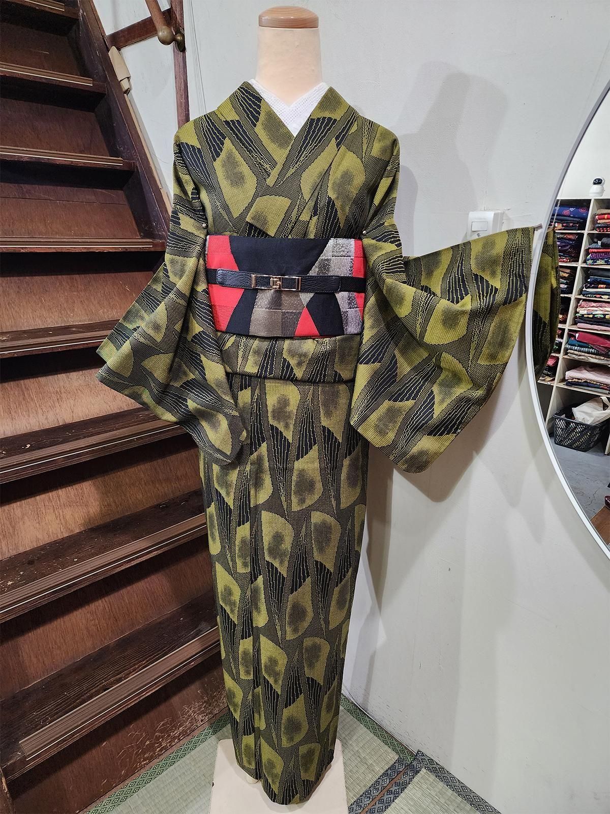 - 印象: アートピースのようなモード感と、ミッドセンチュリーなぬくもりが調和した一枚。大人の遊び心をさりげなく引き出し、凛と格好良い着物スタイルを作り出してくれます。