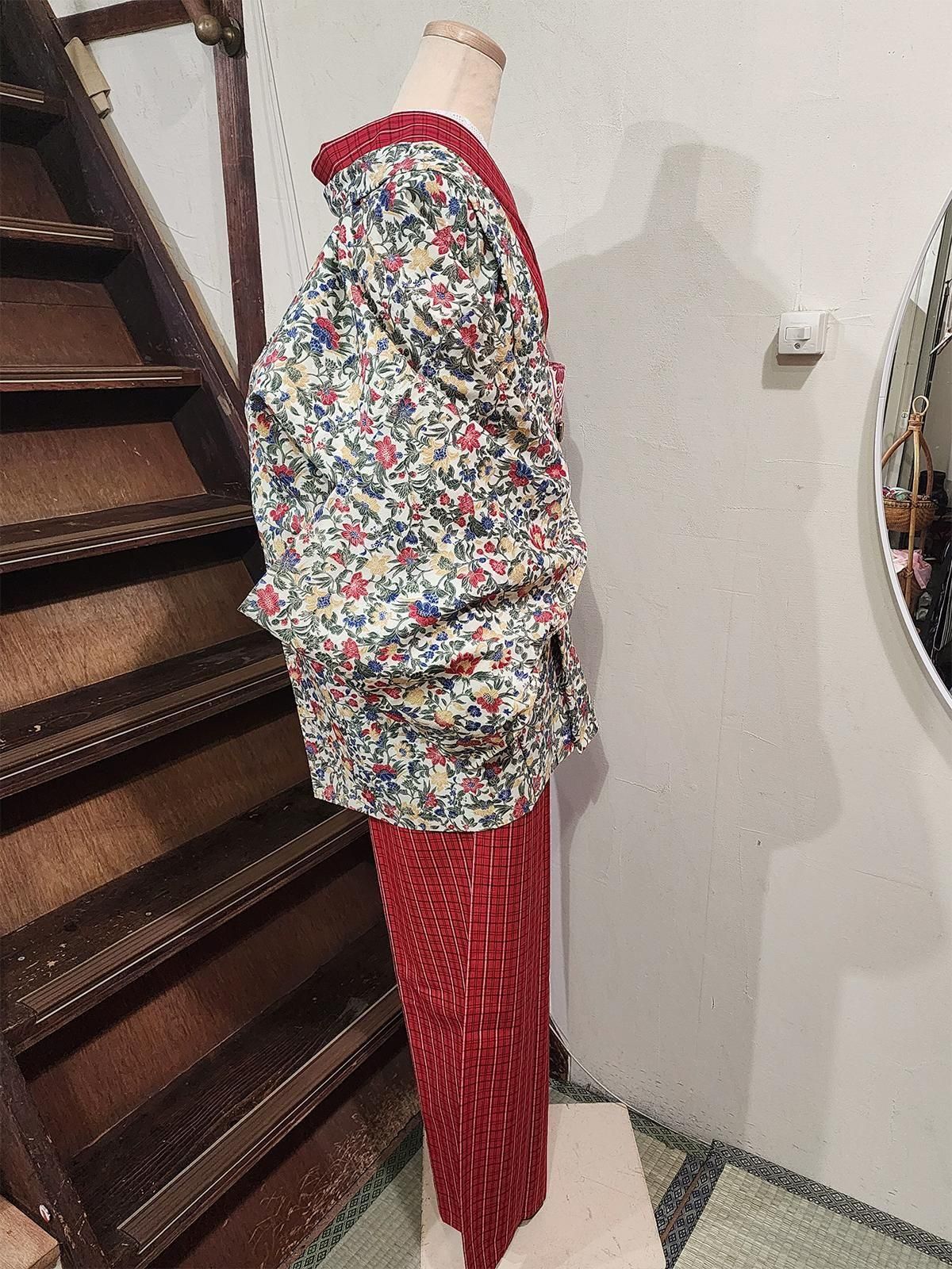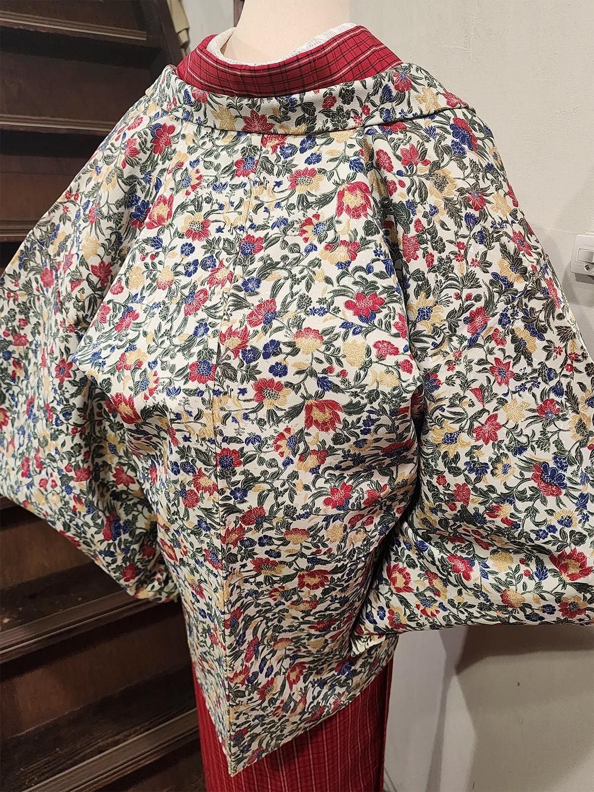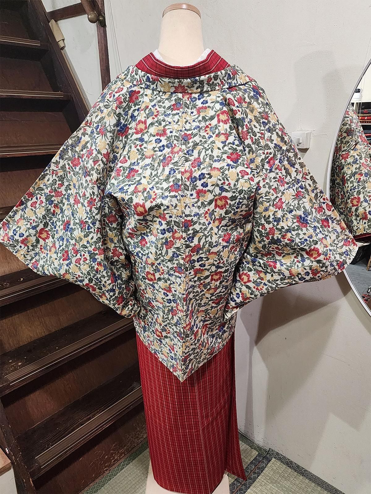 - コーデ提案: 無地の着物に重ねれば柄が主役の上品な華やぎに。赤やネイビーの差し色を拾うと統一感が出て、チェック柄や縞など“柄オン柄”も意外とまとまります。白・生成り・グレージュの帯で軽やかに、黒や濃紺で引き締めても素敵。