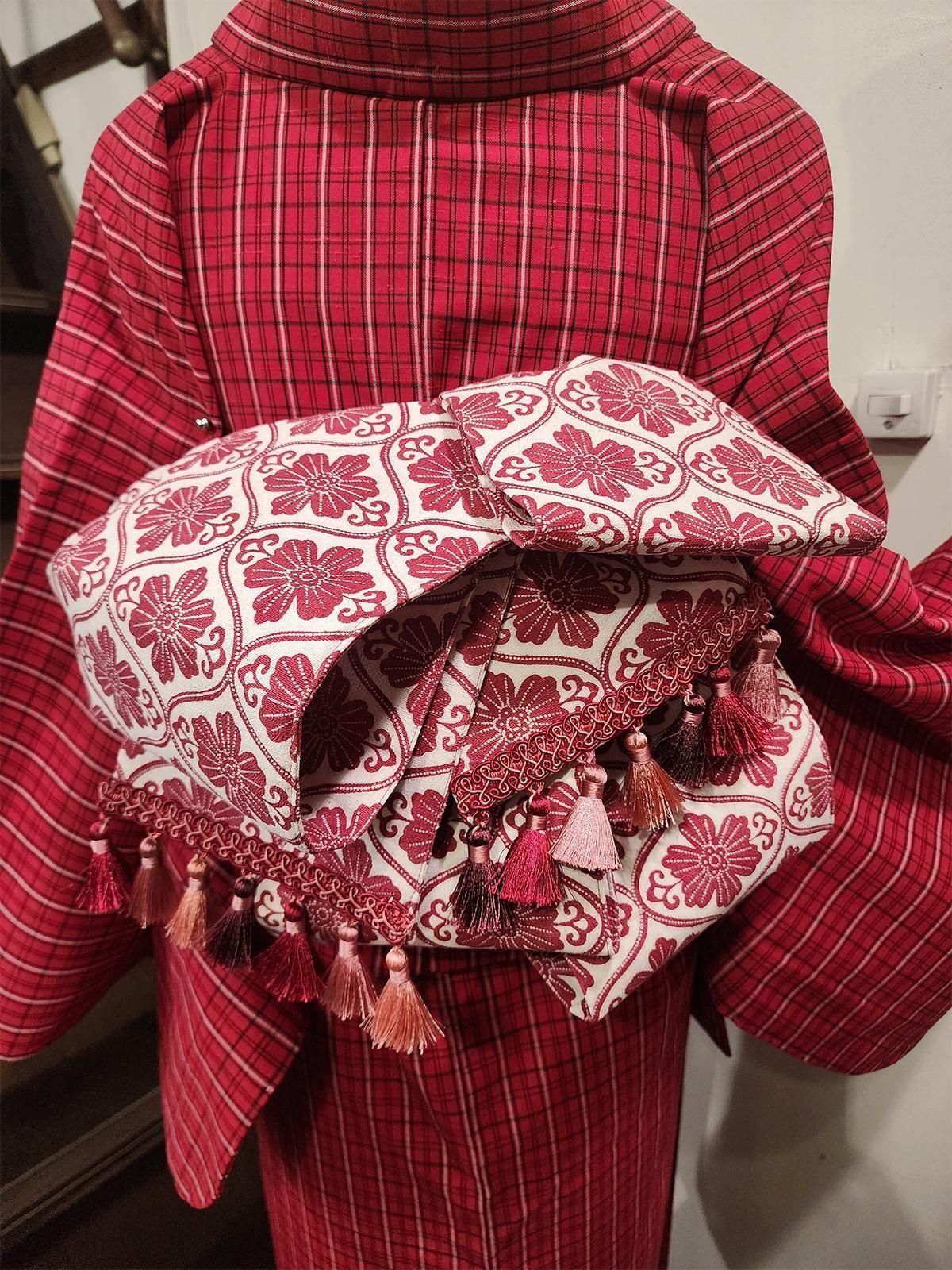 - 着物の帯ならではのしっかりとした素材で、浴衣にもお着物にもマッチしてくれ、一年を通して楽しんでいただけ、特別な日も、ふだんの日も、装いにときめきを添えてくれます